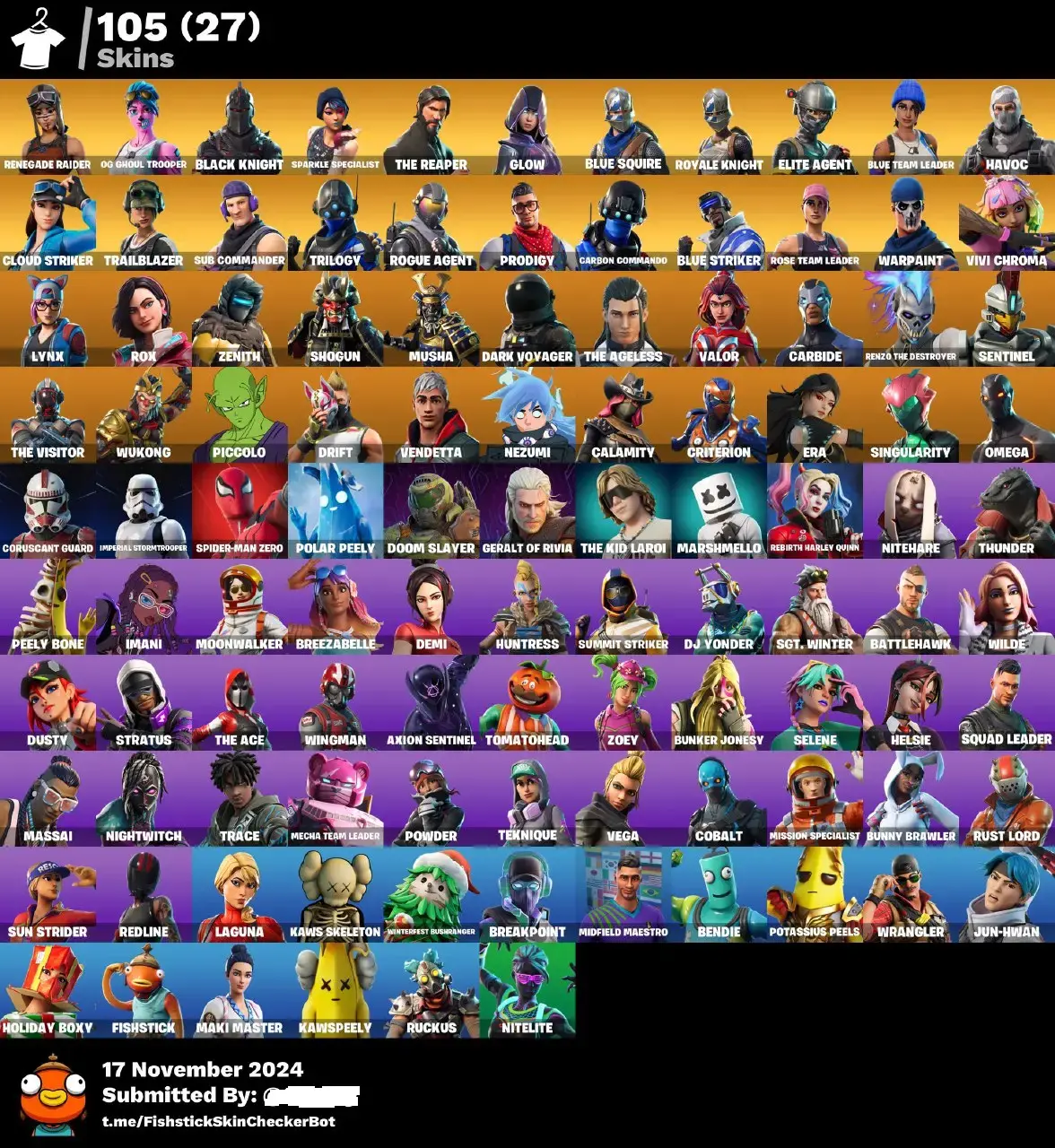 [PSN/XBOX/PC] 🍀 105 skins | OG Renegade Raider ☘️ (Pink) OG Ghoul Trooper 🍀 Floss ☘️ Black Knight 🍀 Sparkle Specialist 🍀 The Reaper 🌈 Glow 🍀 Blue Squire 🎩 Royale Knight | 865 VB