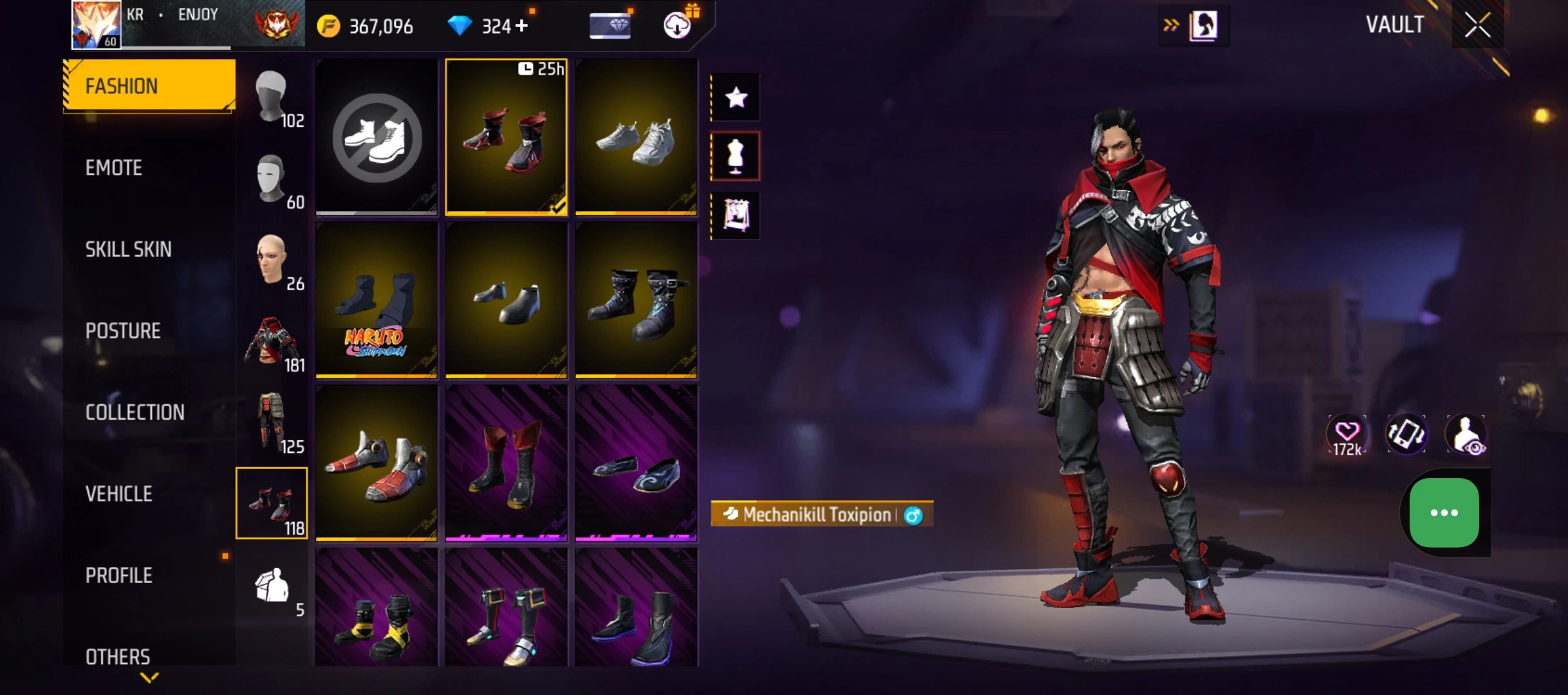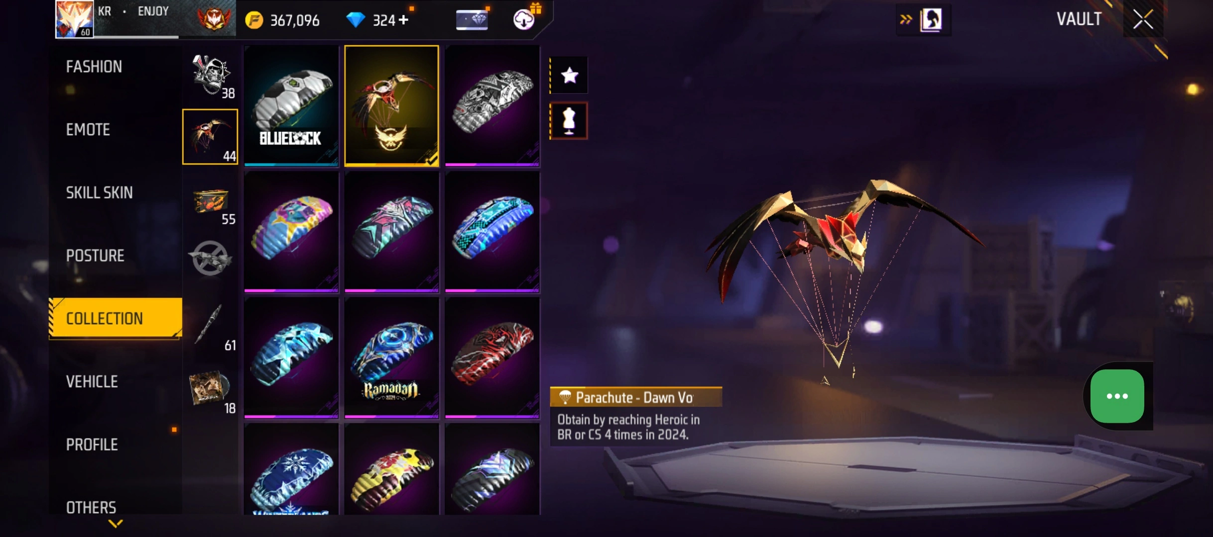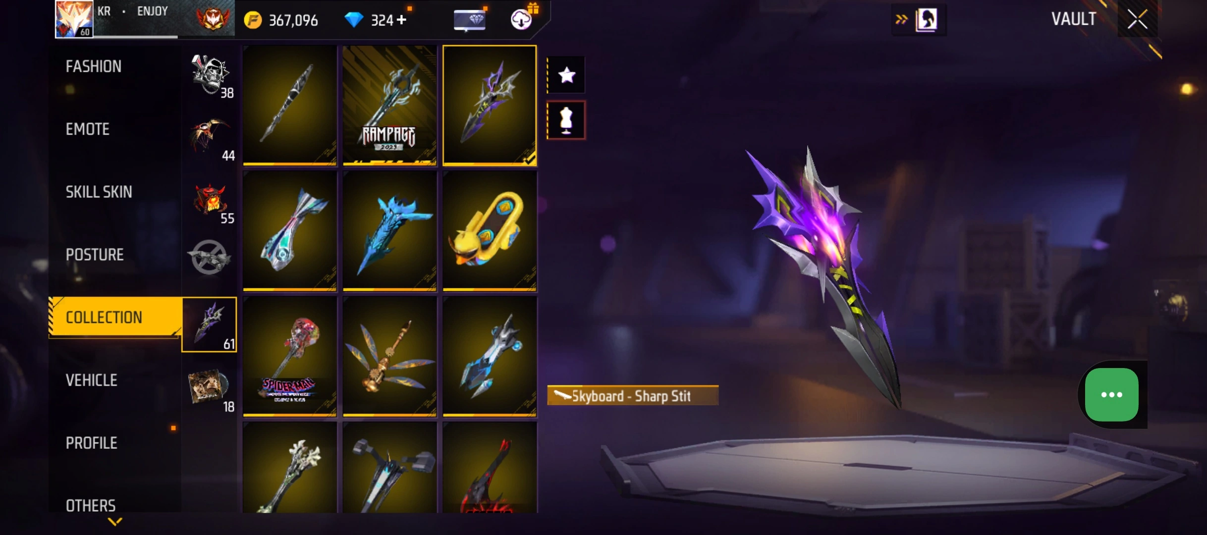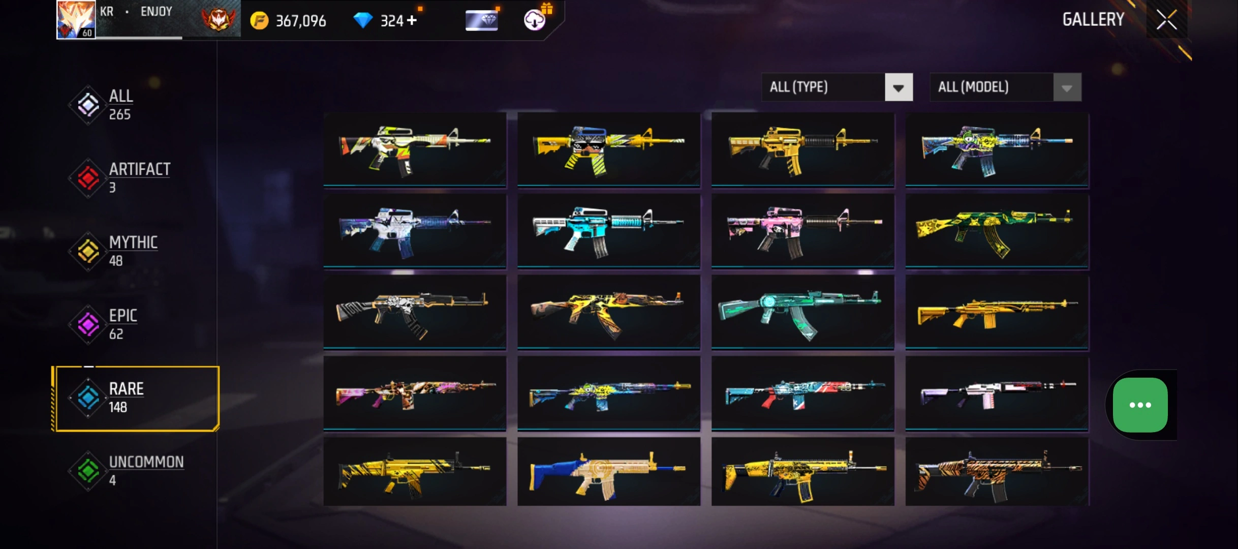 B50|LV60/265 WEAPON (3 EVO + 48 Mythic)/MP40 ⸱ Predatory Cobra Lv. 5/M1887 ⸱ Sterling Conqueror Lv. 5/M1014 ⸱ Scorpio Shatter Lv. 1/181 COSTUME (6 Mythic)/33 EMOT (12 Mythic)/38 BACKPACK (14 Mythic)/7 SPORTS CAR