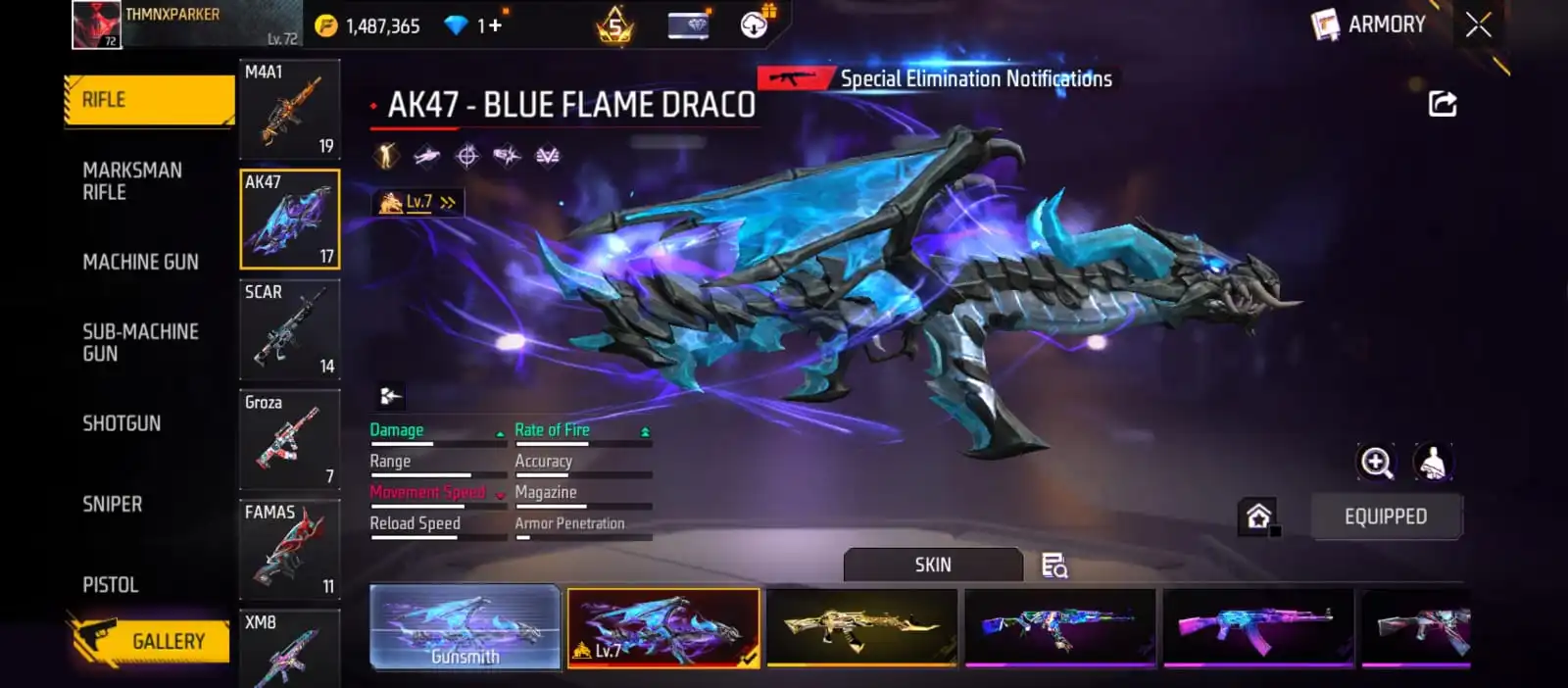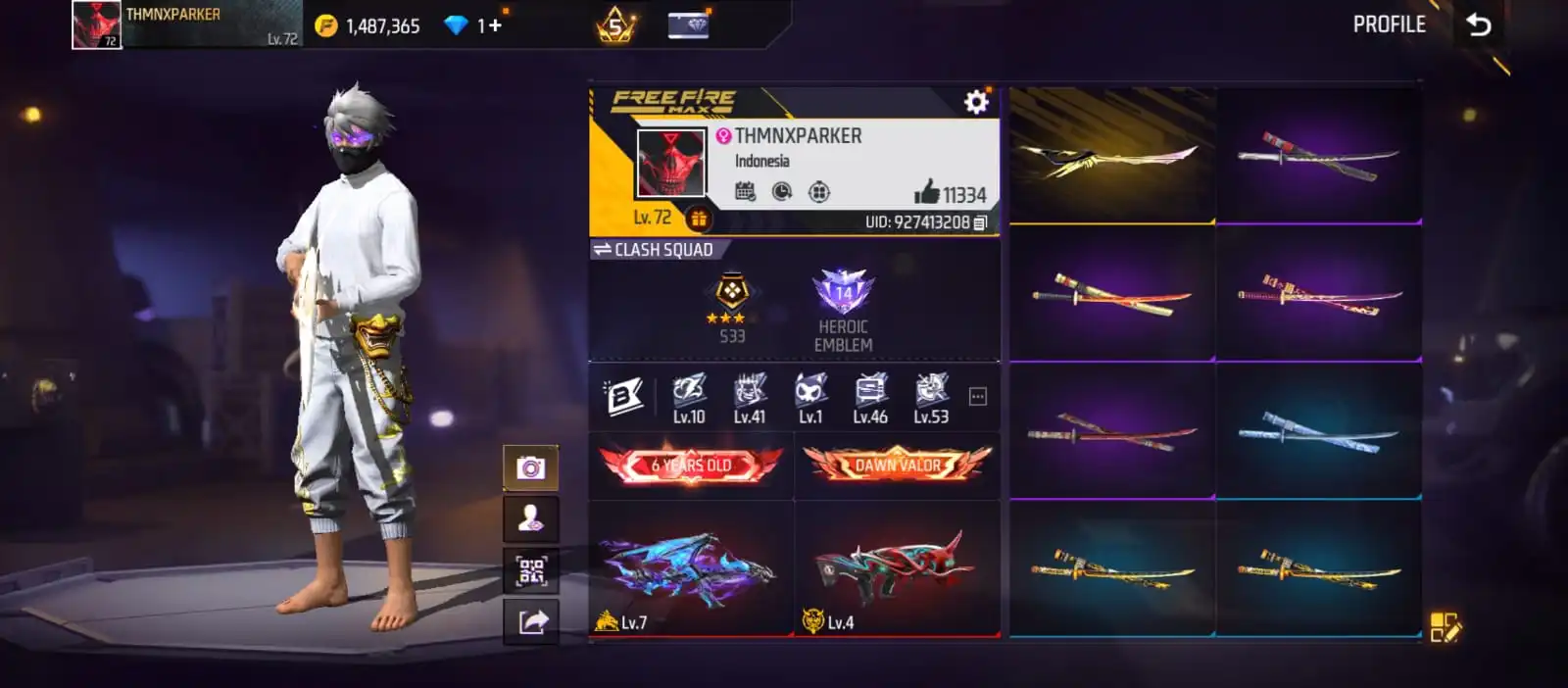 V22|LVL72|602COSTUME(51MYTHIC)|538WEAPON(3EVO+99MYTHIC)|BLUEFLAMEDRACO-AK47LVLMAX|DEMONICGRIN-FAMASLVL4|BOOYAHDAY-UMPLVL4
