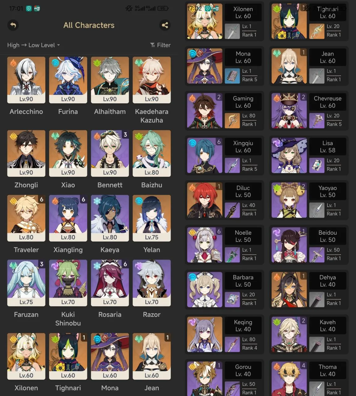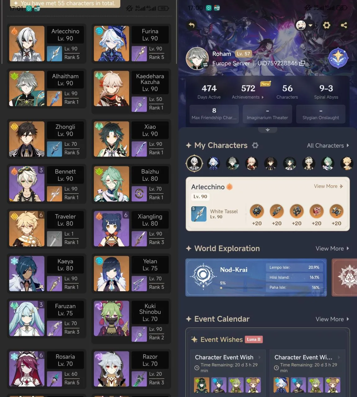 EU 🌐 AR57 🇪🇺 5 Star Character 15 🧨 57 Charcter 🔥 5 Star Weapons 5 🧩 Beutiful Account 🎯 Code588