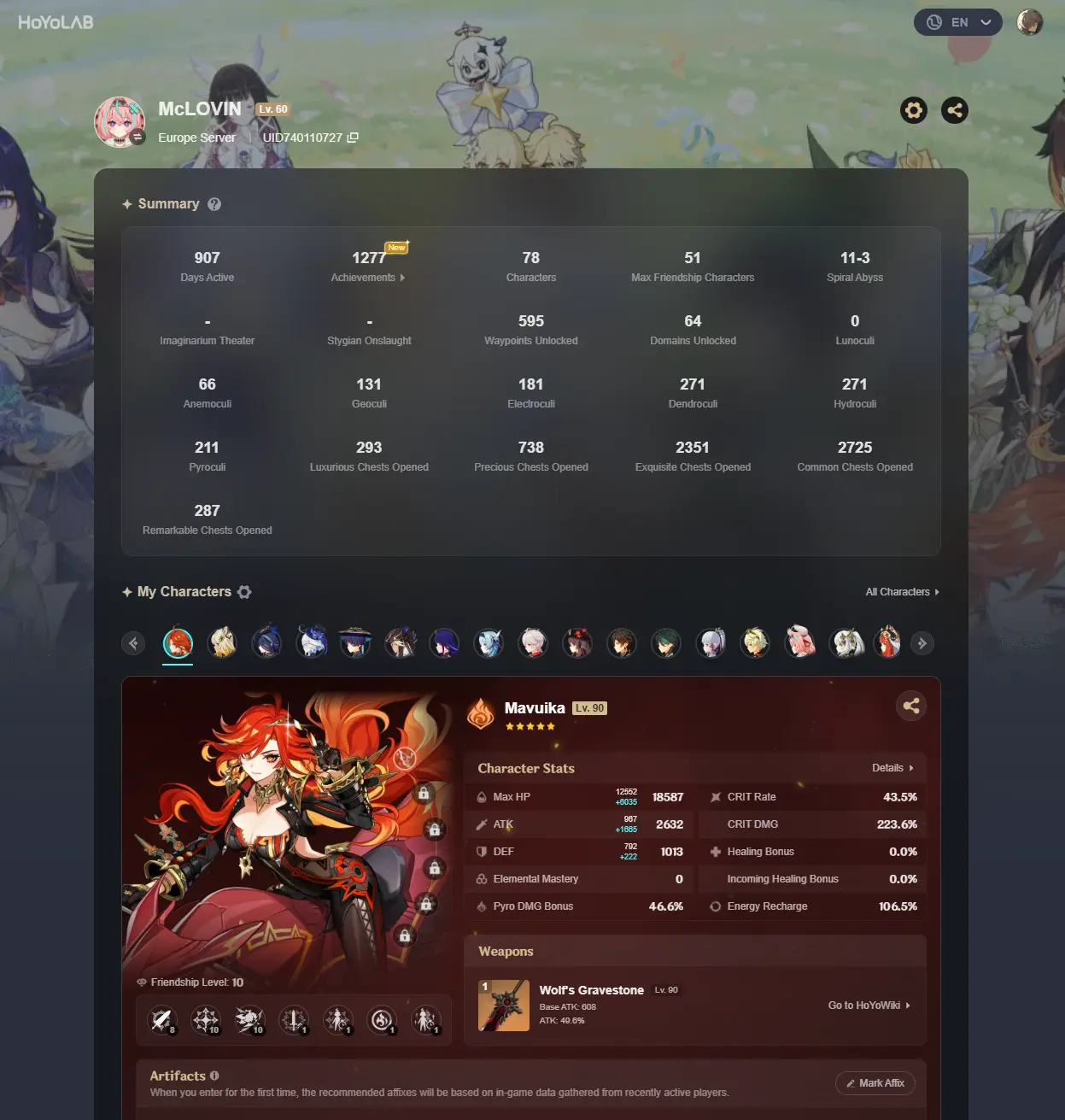 #GE685 [EU] AR 60 | 70 LEGS GENSHIN | 22 EVENT LEGS HSR | Zhongli C3+Mavuika C1+Xilonen C1+Wanderer C1+Clorinde+Furina+MORE!!! | FULL ACCESS + EMAIL