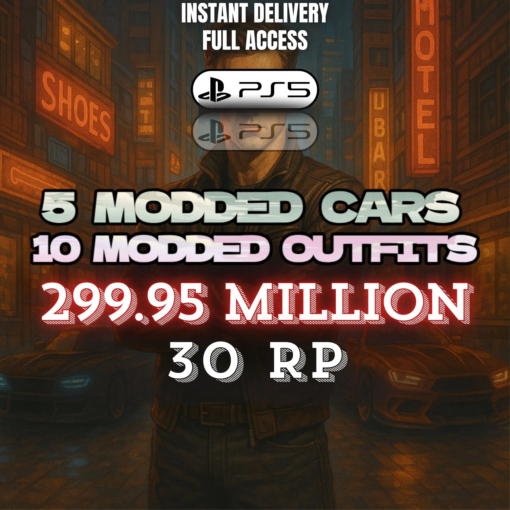 💠 GTA PS5 Modded Account | RP Rank 30 | $299.95 Million (Cash + Cars) + 5 Modded Cars & 10 Modded Outfits 🔹 Luxury Modded Pack | Instant Delivery | QCM23