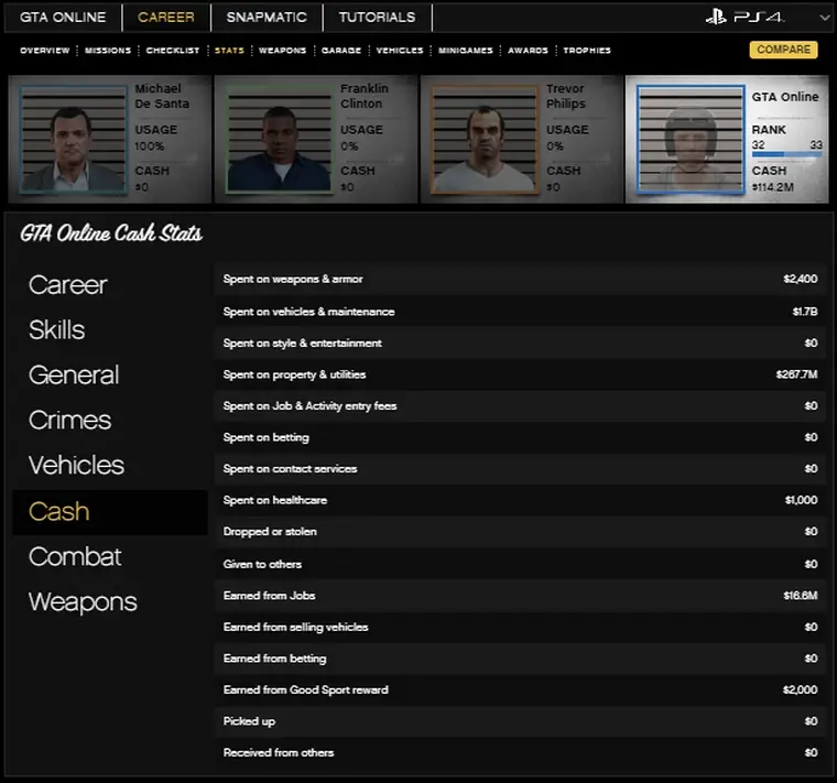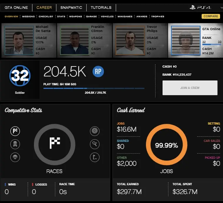 [PS4] Dual Character GTA 5 Modded Account ✦ Exclusive Elite Edition ✦ 1.5 Billion (114M Cash + 510 Cars) | RP Rank 30 | Instant Delivery | Full Access | OF16
