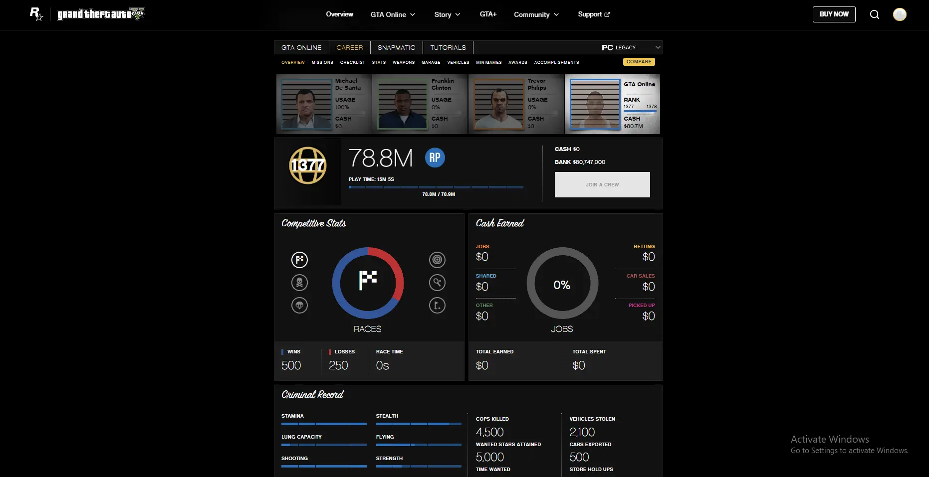 Steam Legacy🔷 1.1B Assets🔷 50 Modded Cars🔷1.02B Casino Chips + 80M Cash 🔷 20 Modded Outfits 🔷 Level 1377 🔷 Max Stats + All Unlocks
