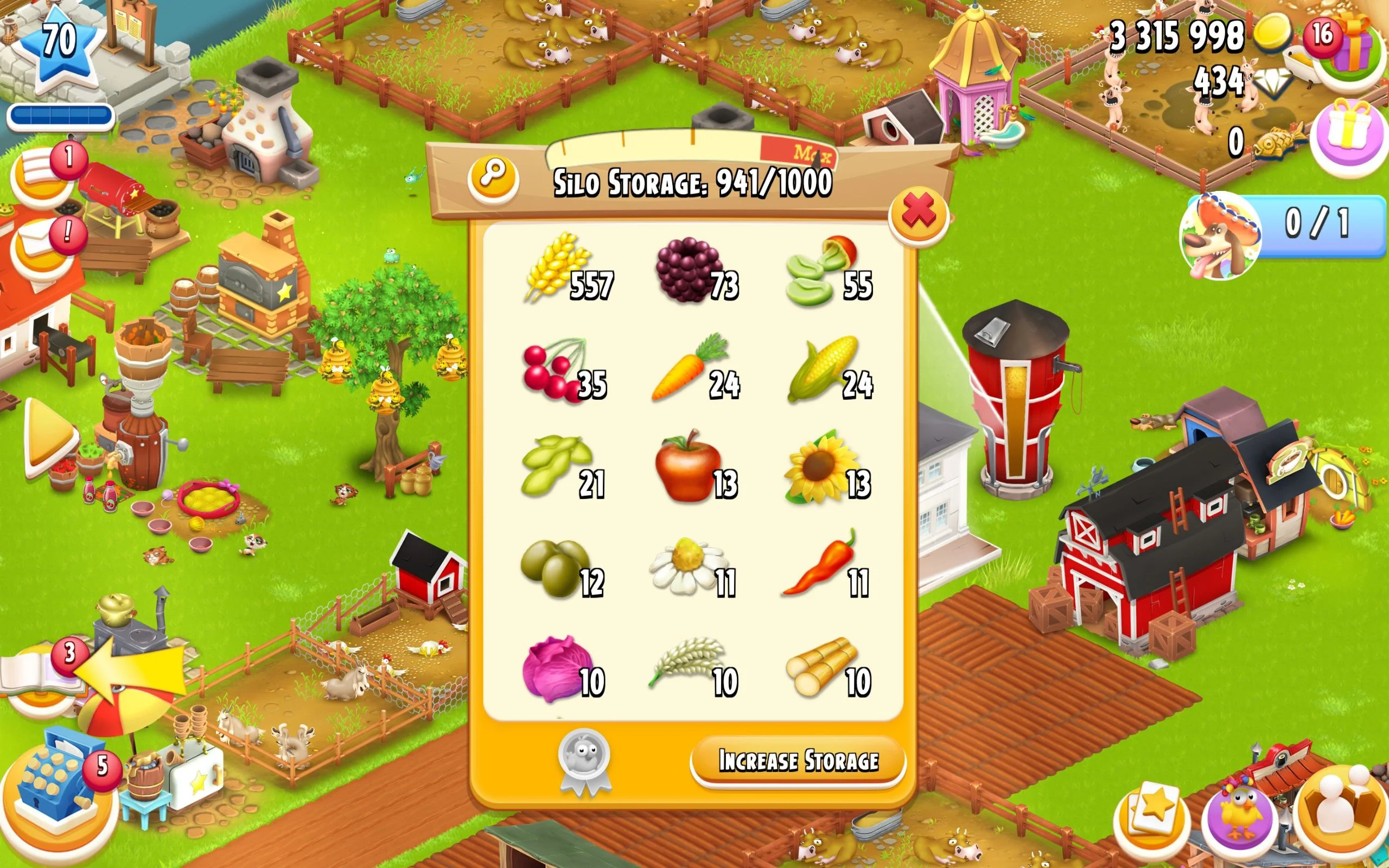 ✨️ CHEAPEST LEVEL 70 HAY DAY FARM 🌾 3315998 COINS🪙 3006/3000 BARN STORAGE💪 941/1000 SILO STORAGE🎯 434 GEMS💎 SUPPORTS BOTH iOS&Android✅️ INSTANT DELIVERY 🚚