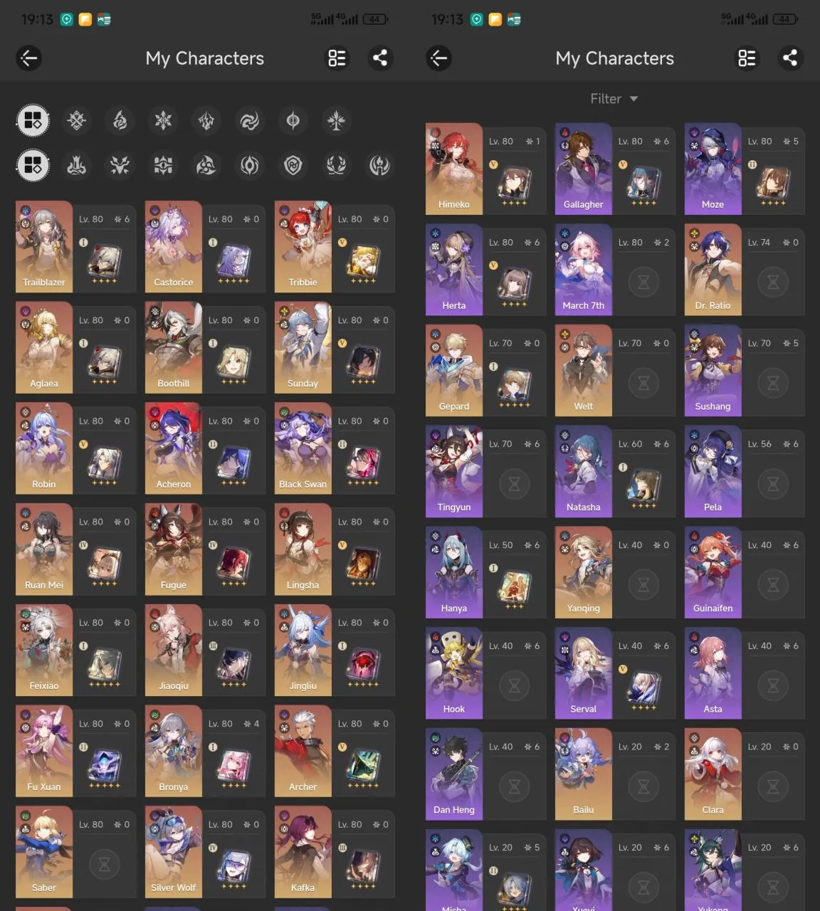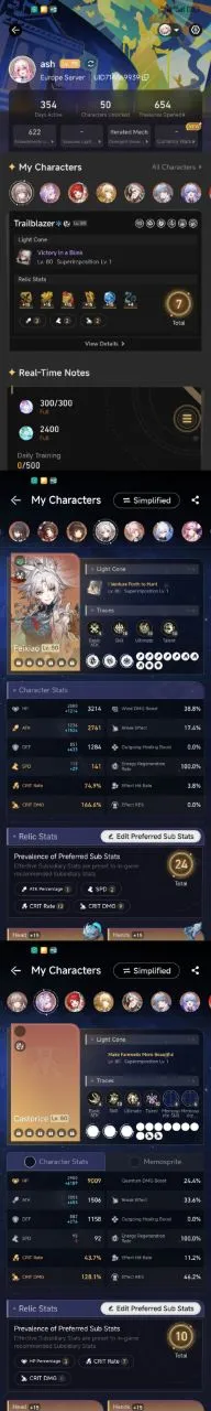 All Platform 🎮 EU 🇪🇺 Level 70 🌟 50 Charcter+28 5'Star 🔥 10 Weapons 5'Star 🏹 Fugue 🎯 Ruanmei 💎 Yanqing 🥶 Archer 🛍️ Kafka 💫 Code845