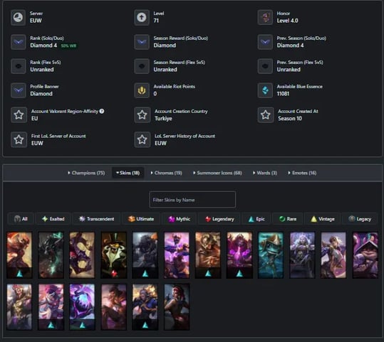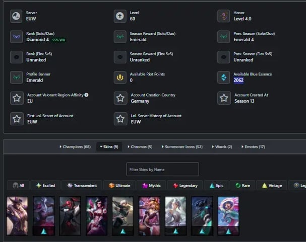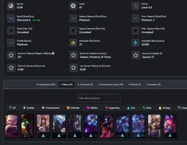 Les joueurs qui achètent des comptes League of Legends Diamond ont tendance à éviter ce processus pour des raisons pratiques, que ce soit pour s'entraîner dans un environnement de qualité, retrouver un rank qu’ils ont précédemment atteint, ou simplement pour faire l’expérience du jeu au plus haut niveau du système standard de ranks. Les comptes Diamond varient entre divisions, et l’écart entre Diamond IV et Diamond I est suffisamment important pour qu’il soit utile de vérifier la division avant l’achat.