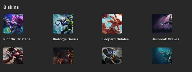 EUW ⸱ LEVEL 22 ⸱ UNRANKED ⸱ 8 SKINS ⸱ 1469 BE, 113 RP ⸱ 33 CHAMPS