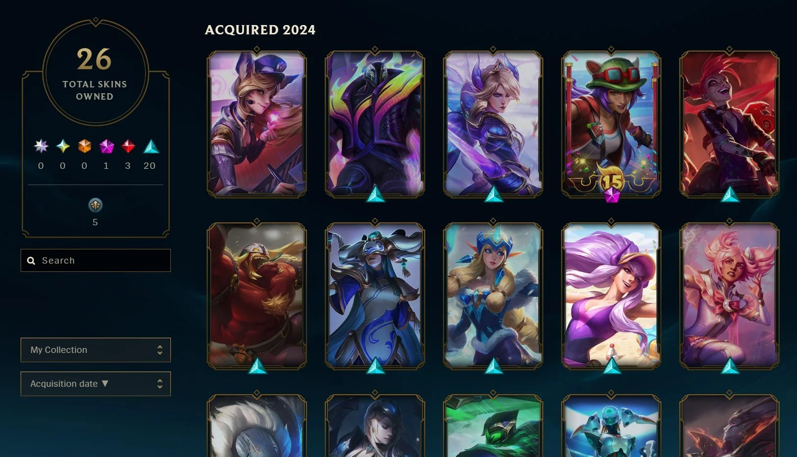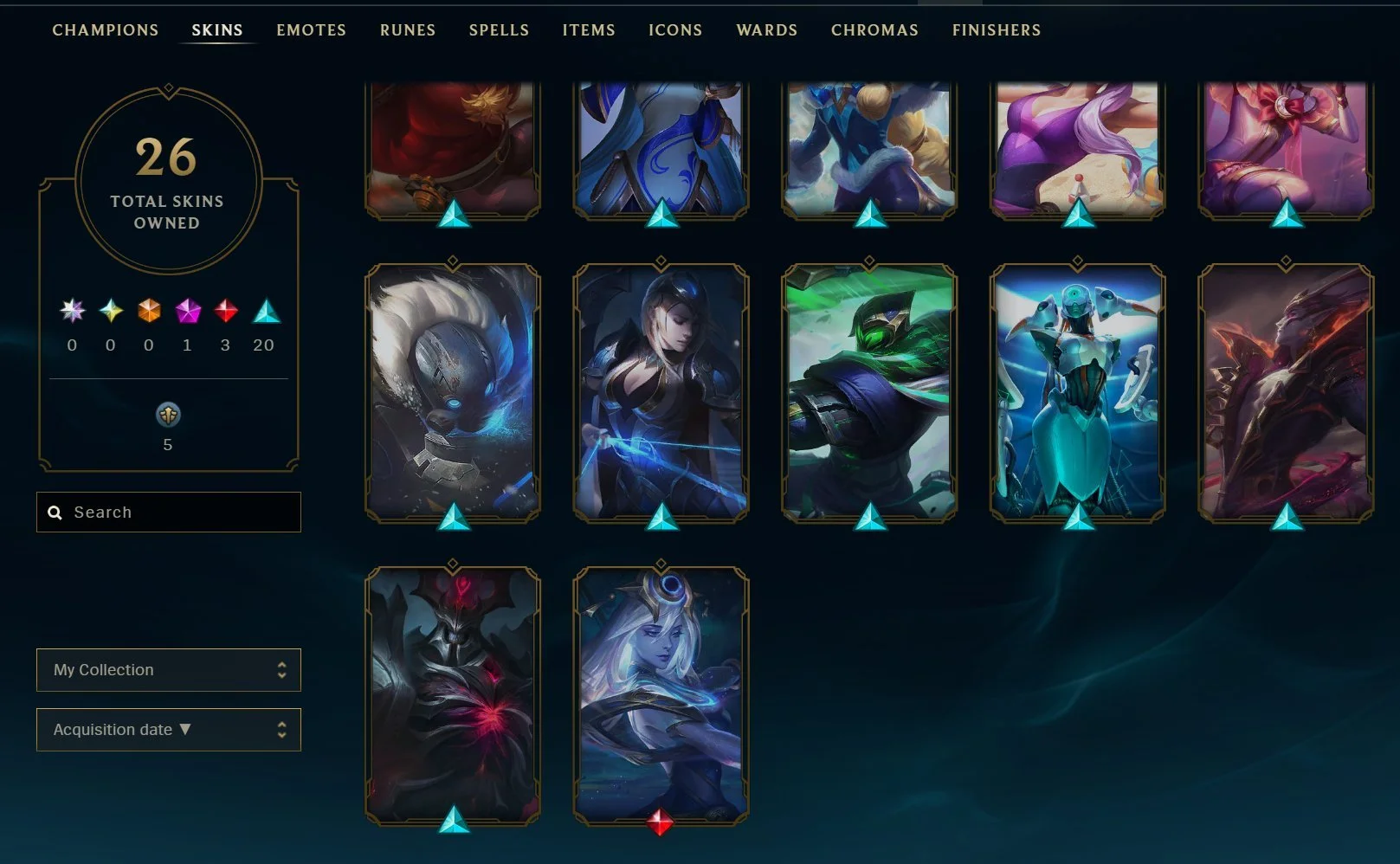 LOL63 //53 Skins, 70 Champions, 4 Legendary (Cosmic Lux, God-King Darius, Coven Morgana, High Noon Ashe), Level 52, 19.3K BE
