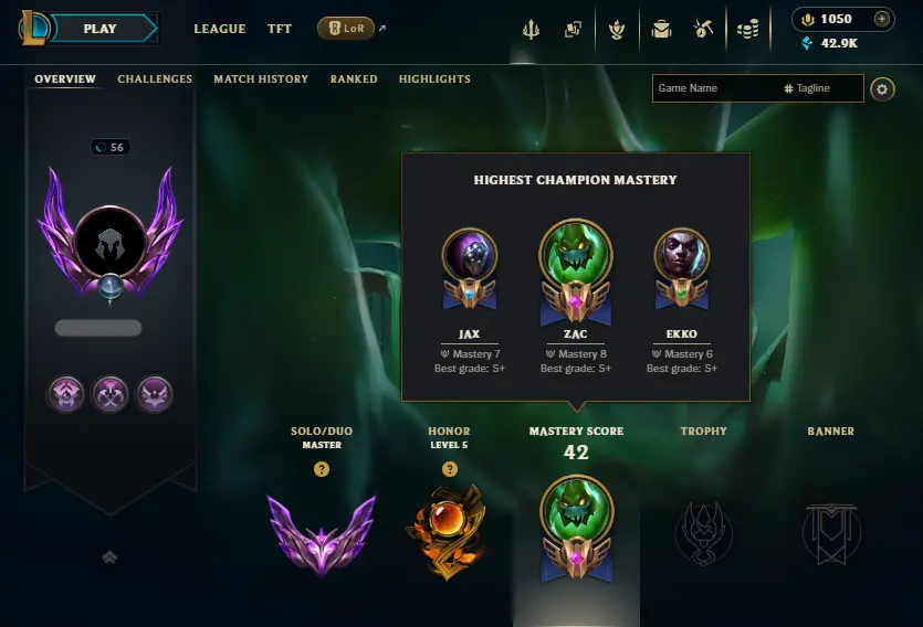 MASTER 55+LP✨Honor 5 Clean💎1050RP 43K BE⭐Name Changeable🔓Unverified Email✅Instant Full Ownership