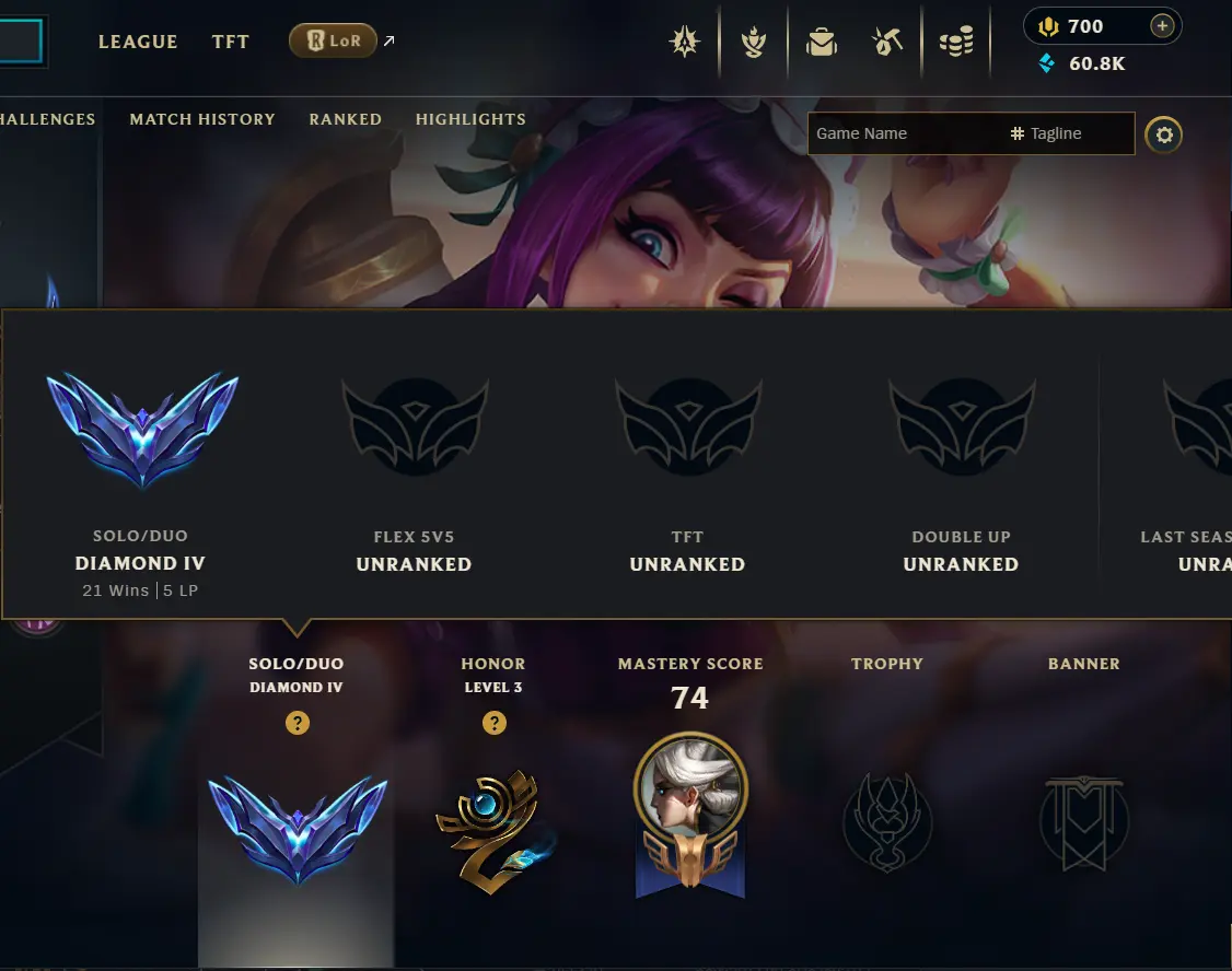 [ 🔥NA S15 SPLIT 3 ] DIAMOND 4 [5LP] ✅️ HANDLEVELED✅️60%WR✅️(21W14L) ✅️TOP/MID Main ✅️ Flash: D✅️BE: 60,000✅️ Honor 3✅️ CHANGEABLE RIOT ID