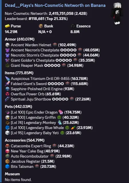 ⭐Minecraft Premium Account Hypixel MVP+ Rank ⸱ 2 Capes 112 Level Skyblock Networth 5B+ 💯 Full Access