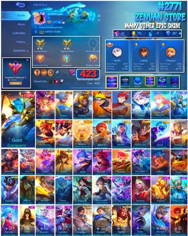 #2843 🔥 332 Skins 🔥 Legend Gusion 🔥 Collector Yu Zhong, Natalia 🔥 Transformers Aldous, Roger 🔥 M-World Yin 🔥 Seint Seiya Badang 🔥 KoF Karina 🔥 Many Limited 🔥 Many Epic 🔥 Safe Account ✅