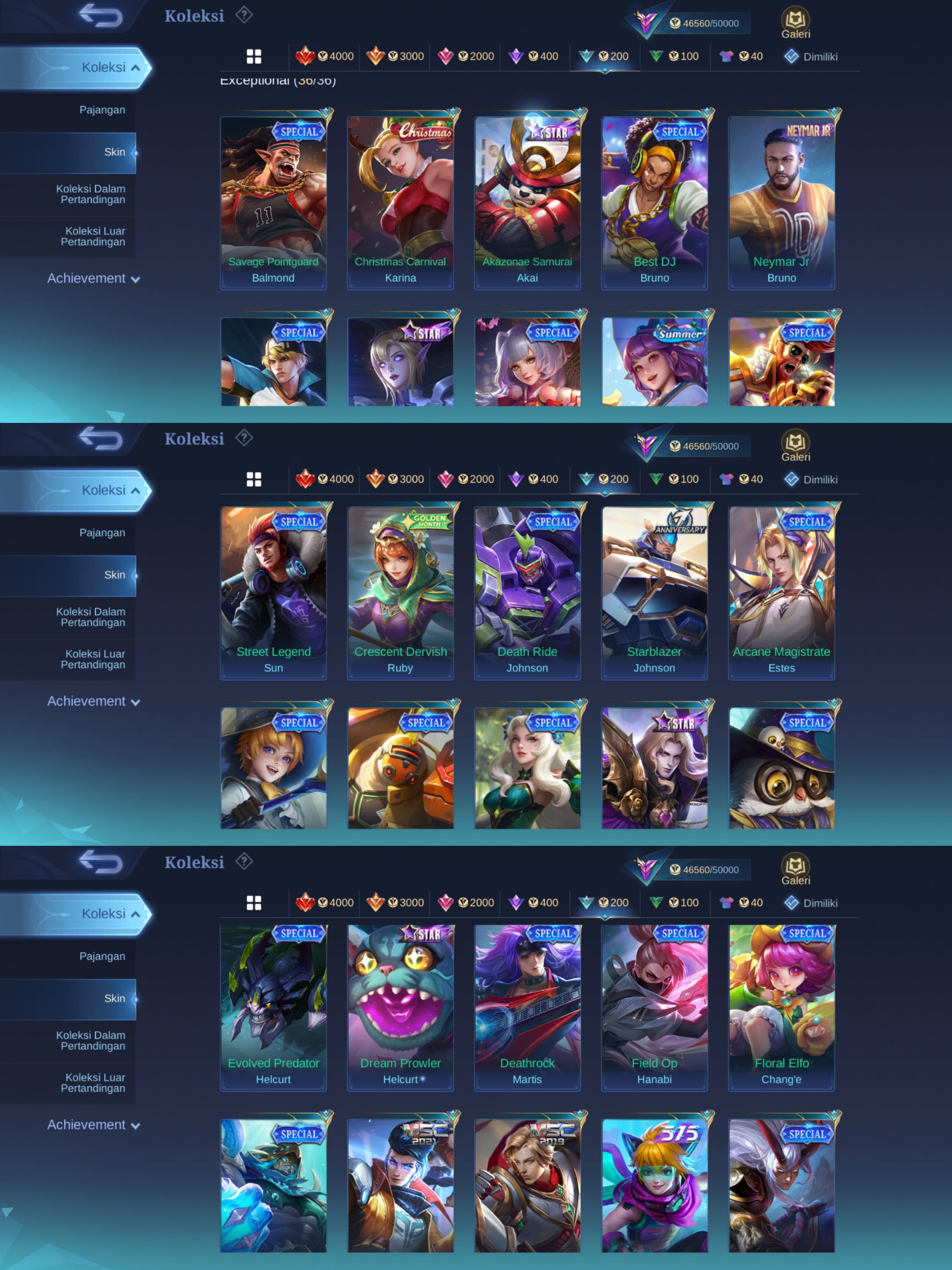 BEST MEGA DEAL✨HERO 116✨SKIN 196✨EMBLEM MAX✨FLORIN SANRIO✨NATALIA CC✨ODETTE MERMAID ✨VALE NARUTO ✨BADANG SEIYA✨3 BLAZING ✨2 DRAGON ✨3 VENOM✨EPIC 14✨STAR 7✨SPECIAL 27 ✨MSC 2✨SAFE ACC✨INSTAN DELIVERY