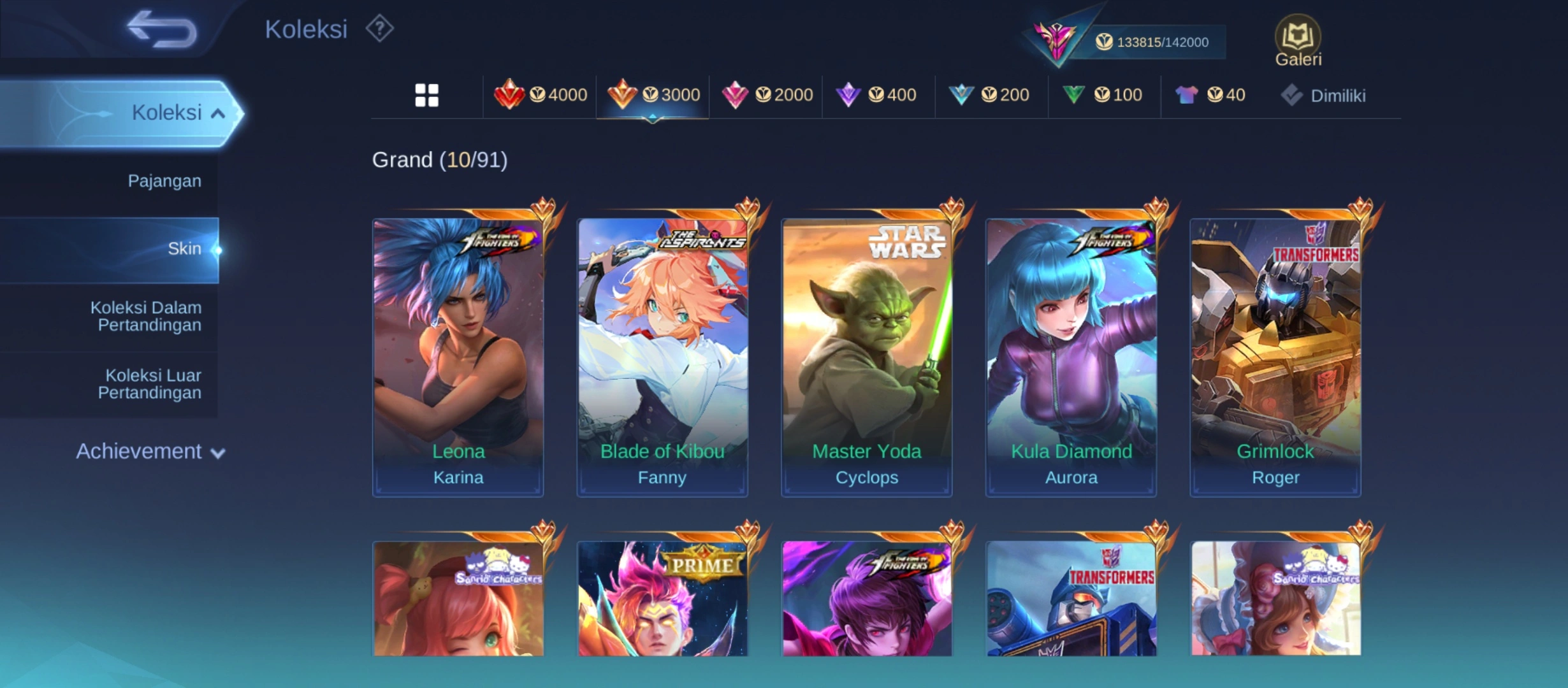 M239|LVL139|129HEROES|411SKIN|GUSIONLEGEND|FANNYASPIRANTS|CYCLOPSSTARWARS|KOF(DYROTH,KARINA,AURORA)|TRANSFORMERS(POPOL&KUPA,ROGER)|LEGENDIVS37