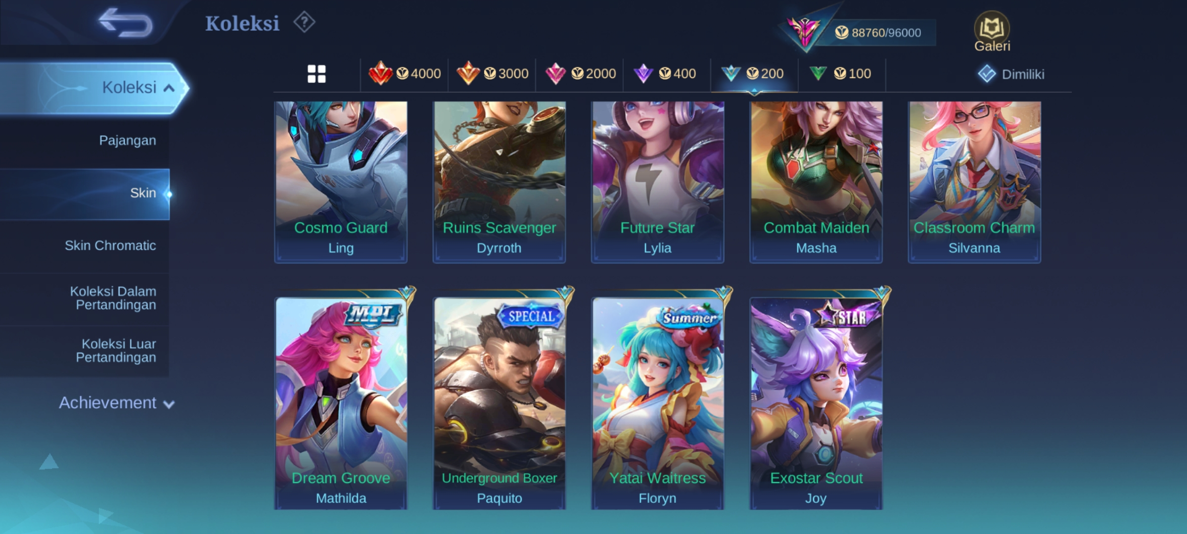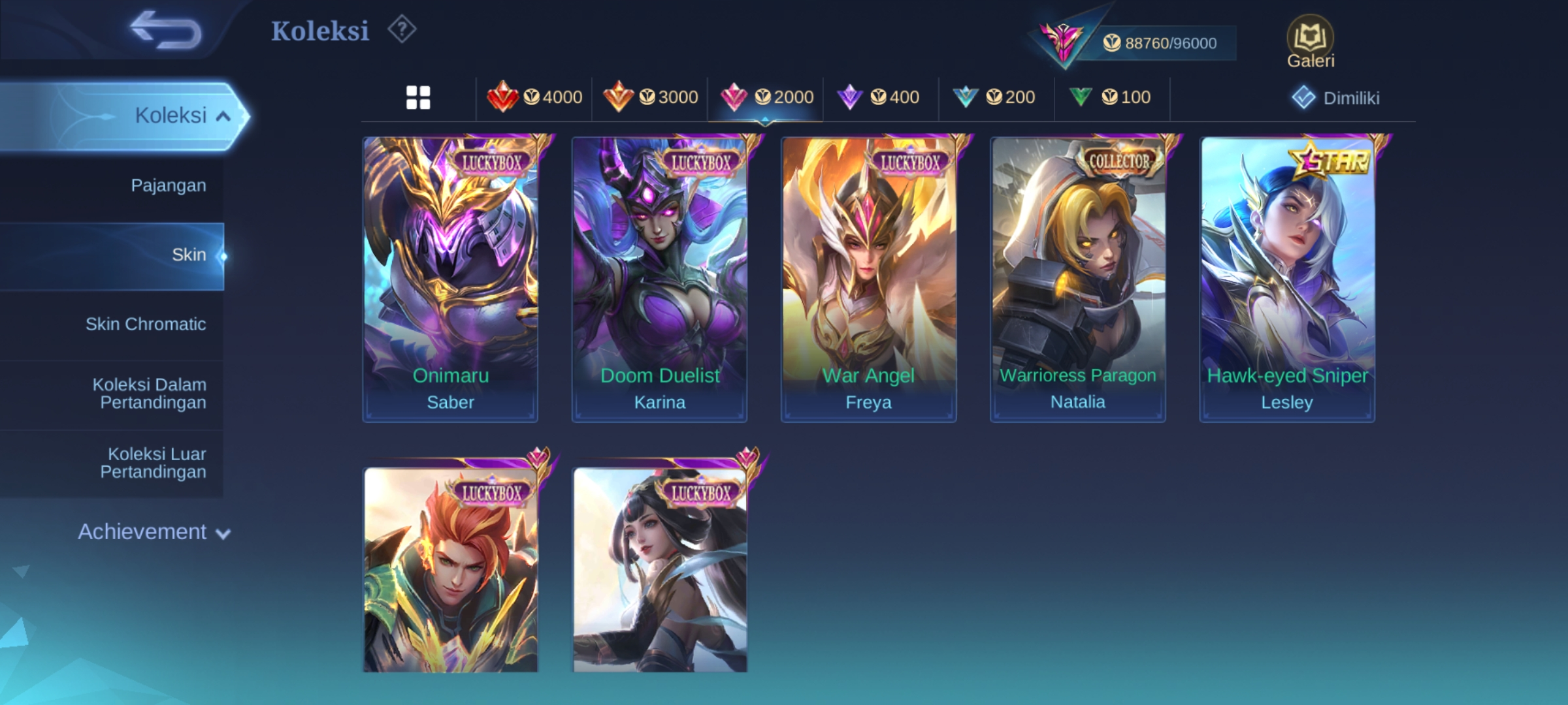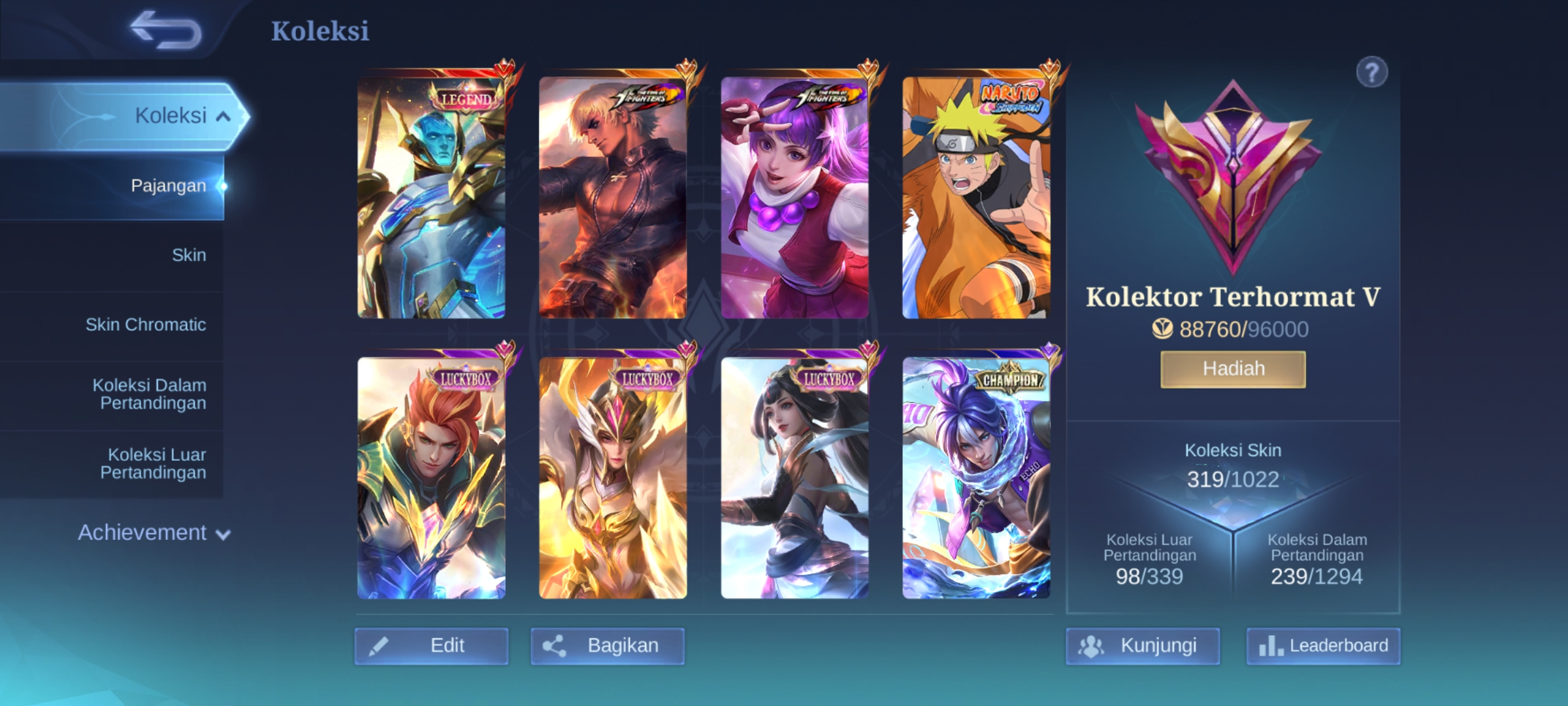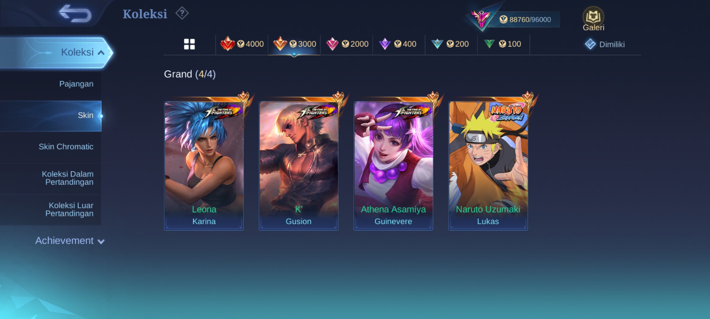 ML-371 Skins 319 [ Legend Gord ] Ex Immortal 101 / Naruto Lucas / KOF Gusion x KOF Guinevere / 5 Luckybox / Anual Lesley