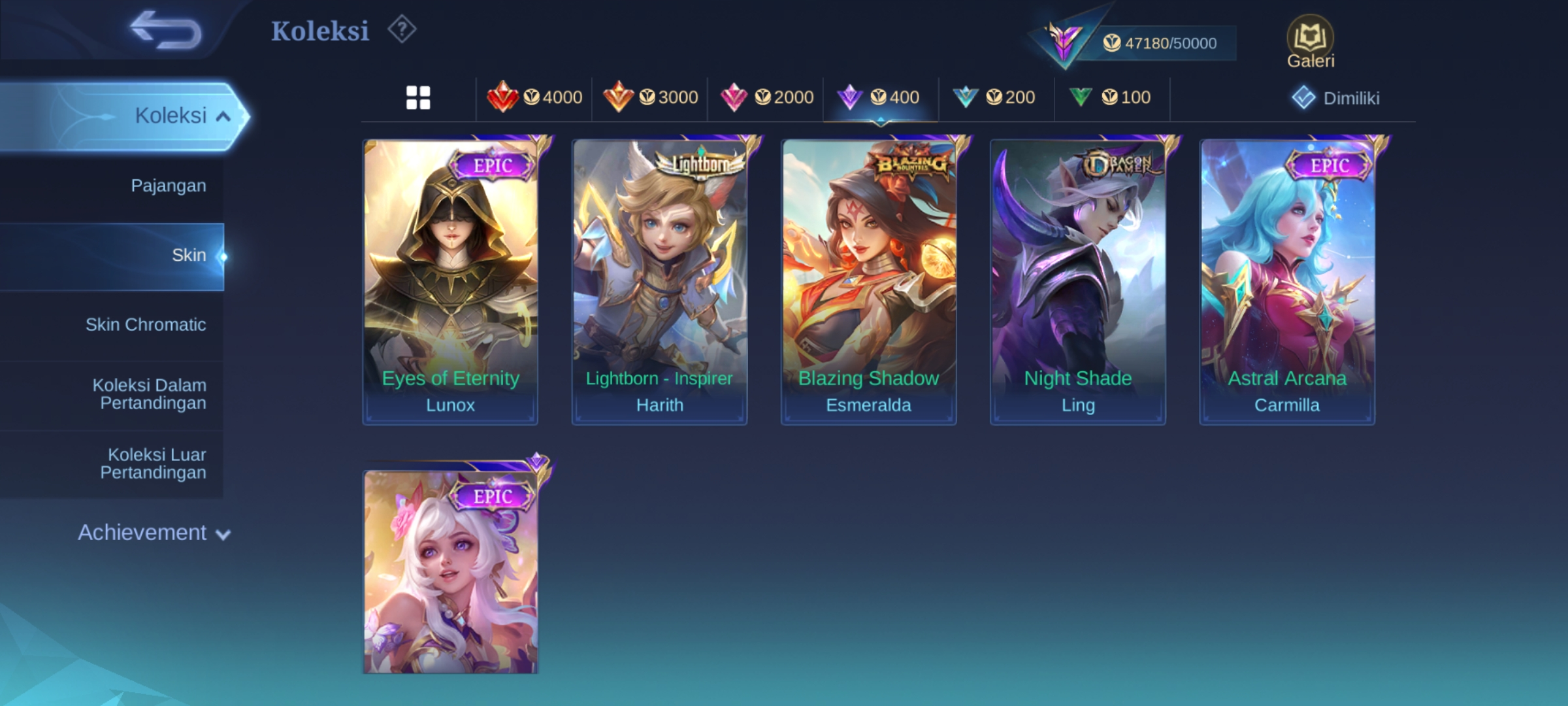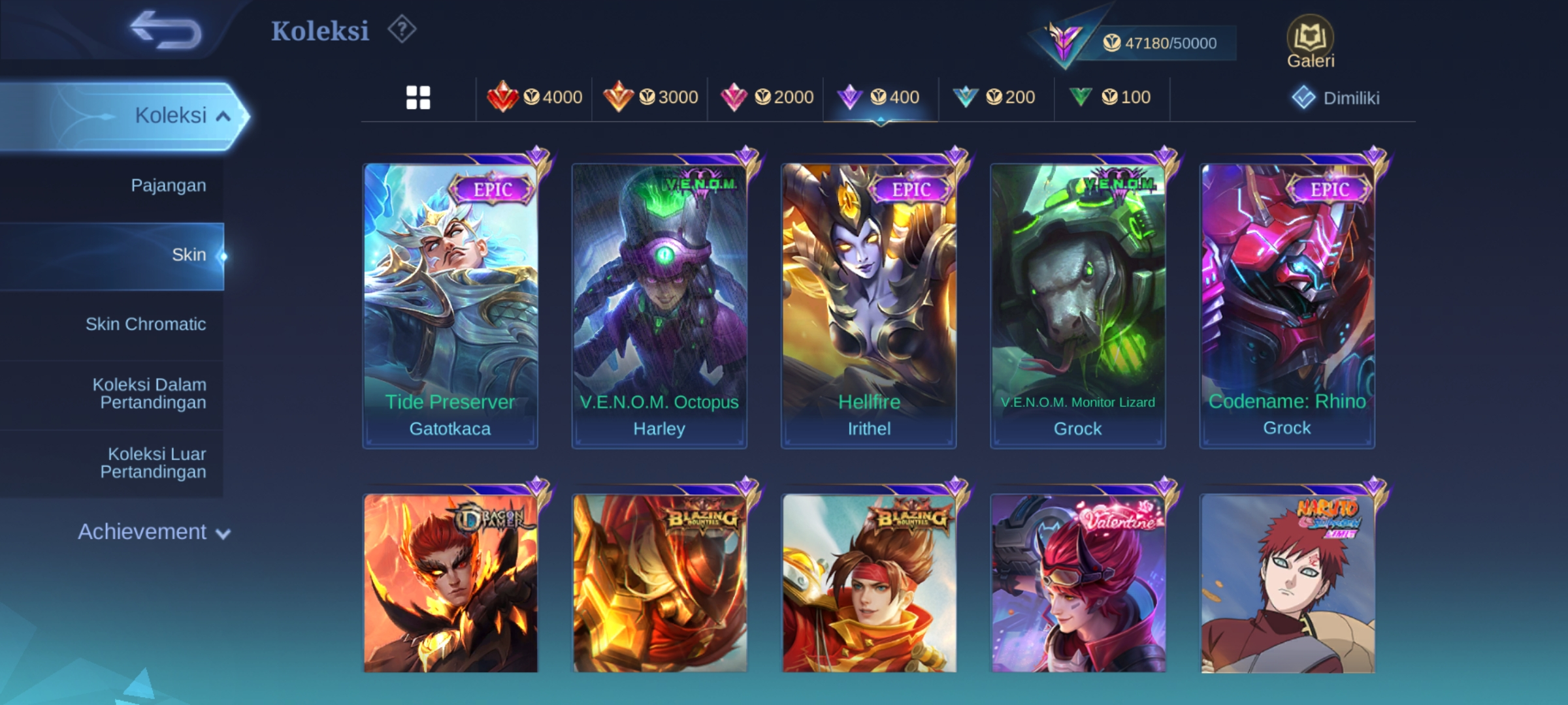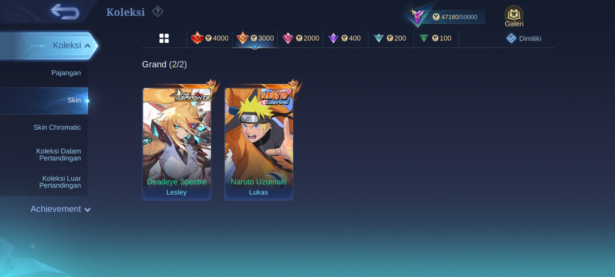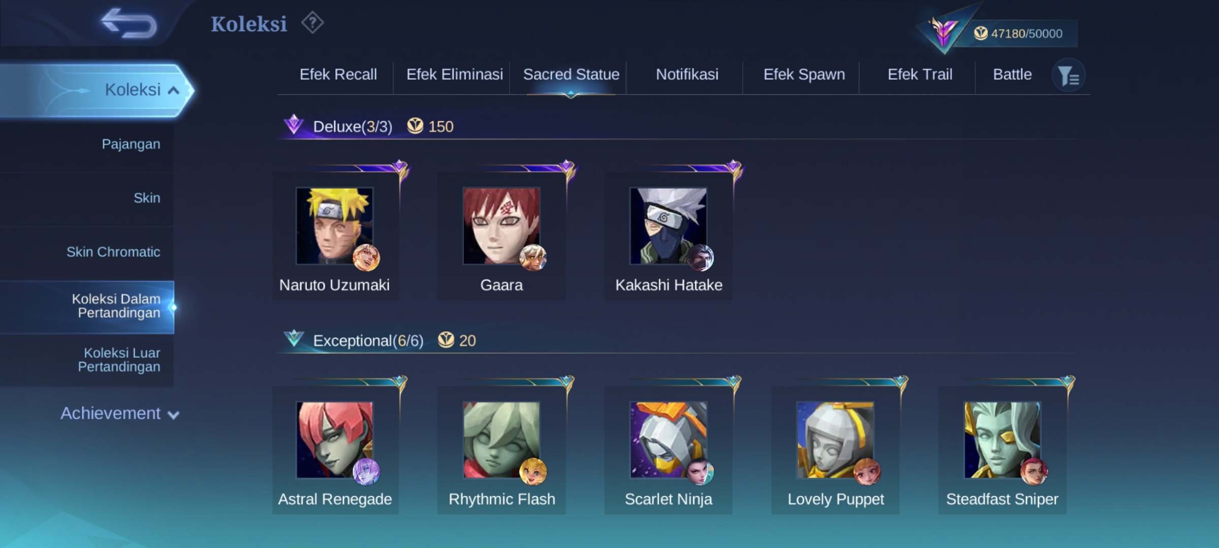 ML-384 Skins 146 [ Legend Valir ] Naruto Lucas / Aspirants Lesley / Gaara Vale / Collector Natalia / Valentine Claude / 2 Luckybox / Recall epic limitid