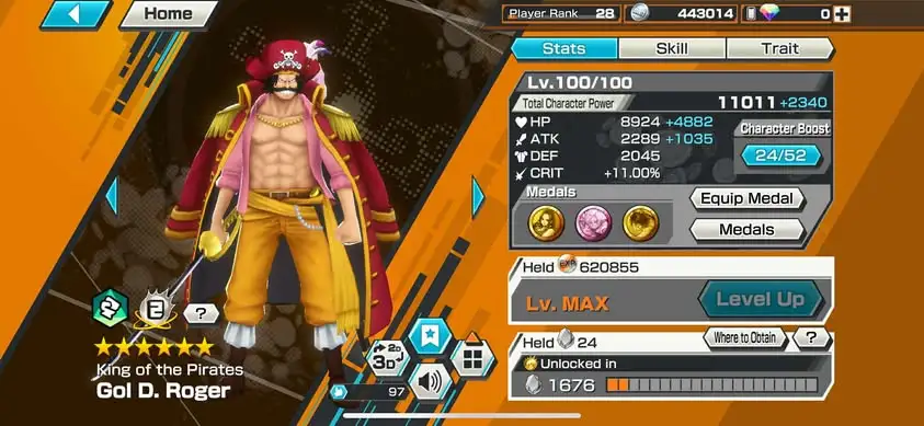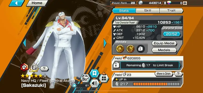 [3372][IOS+ANDROID] 3 EX / Akainu + Roger + Yamato, Support 124%, Good Medal