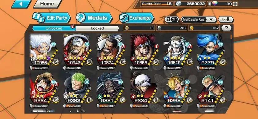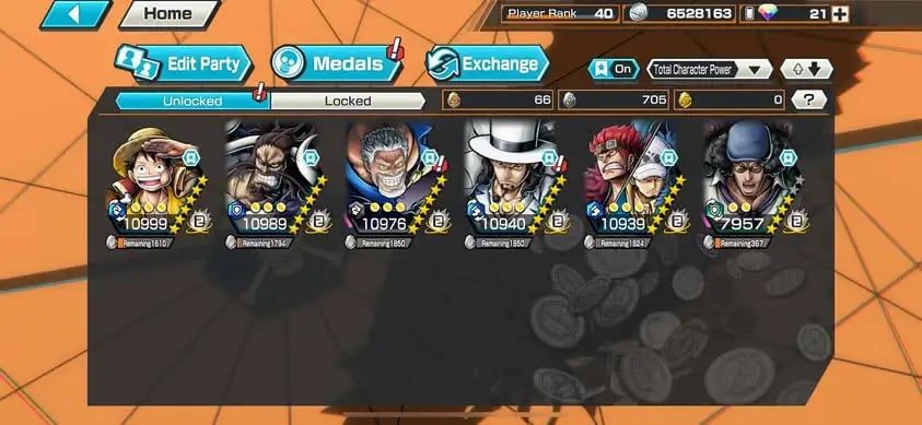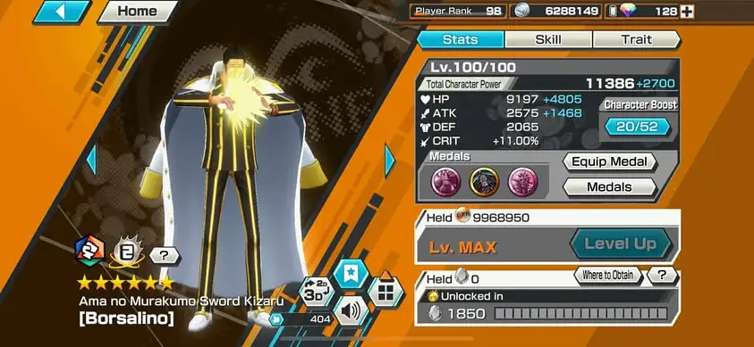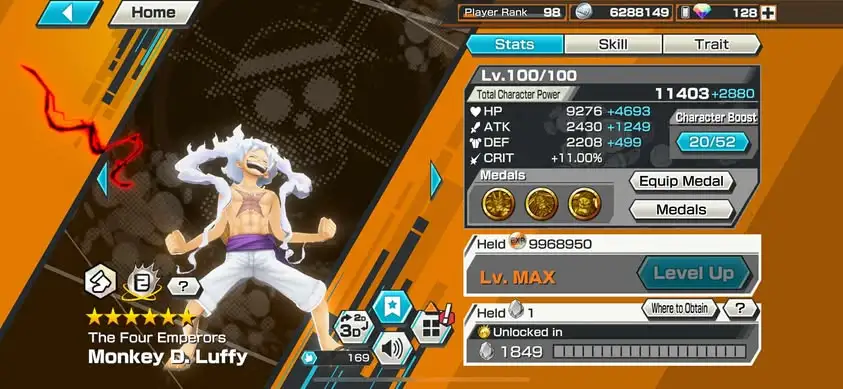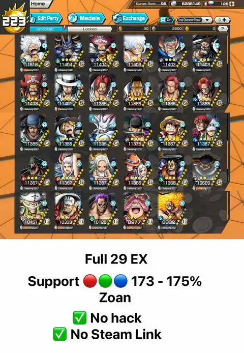 [BeCam][IOS+ANDROID] Full 29 EX / HB 223 / Support 175% tag Zoan / Saturn + Luffy Light + Kizaru + Garp + Kuzan + Lucci + Roger Dark , Many meta BFs , Best Medal 24%