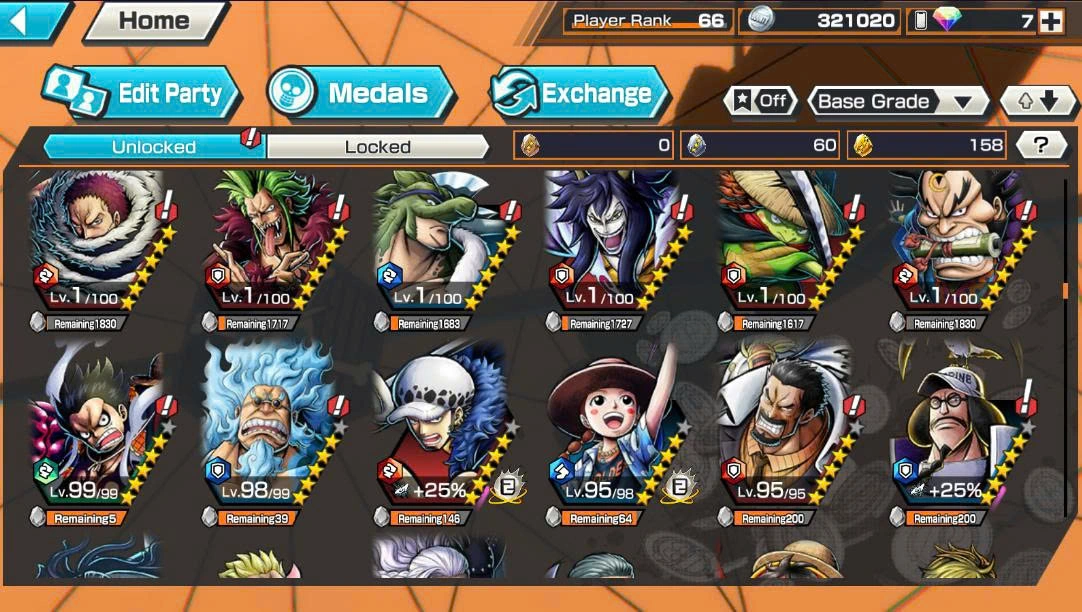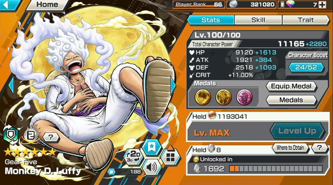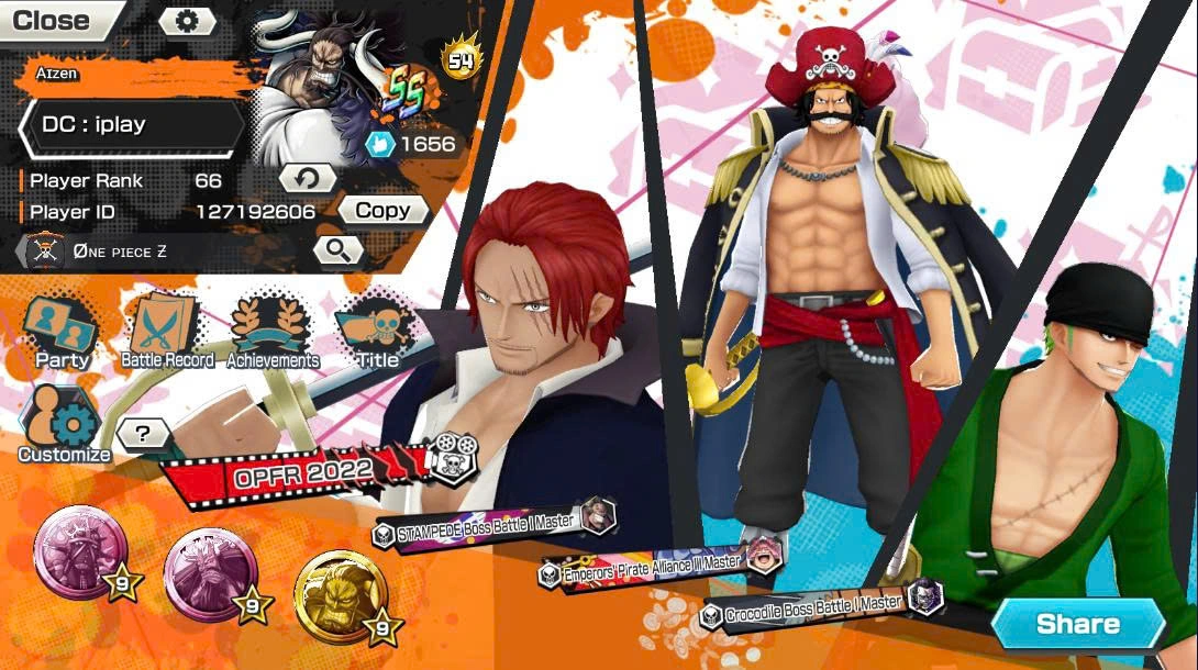 BR604-IOS+Android-Hyber Boost 54+11 Ex(Luffy Gear 5+Shank v4+Roger Skin+Zoro Skin+White Beard+Roger v2+Kaido+Zephyr+Yamato+Oden+Black Beard)+Good Medal+Support 164%+Many Bounty Festival Max+Good Accoount