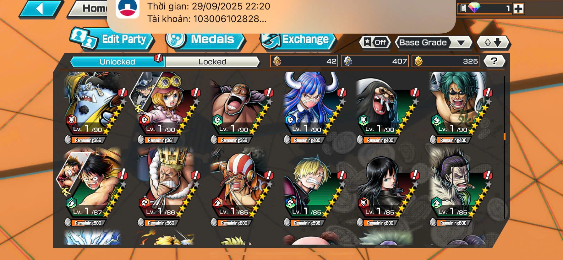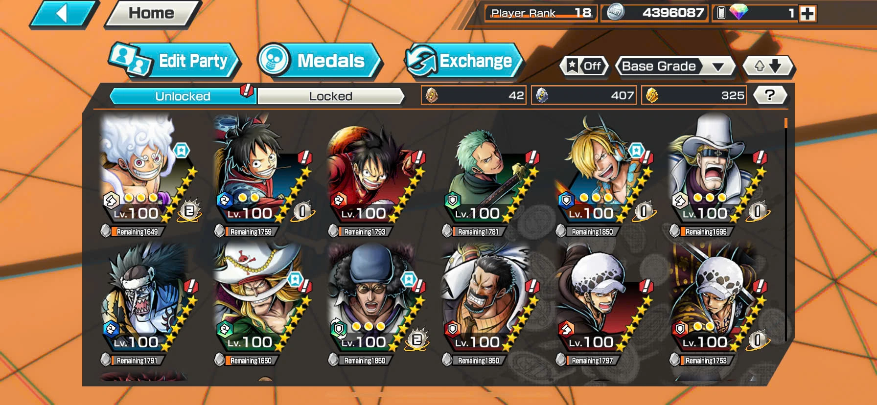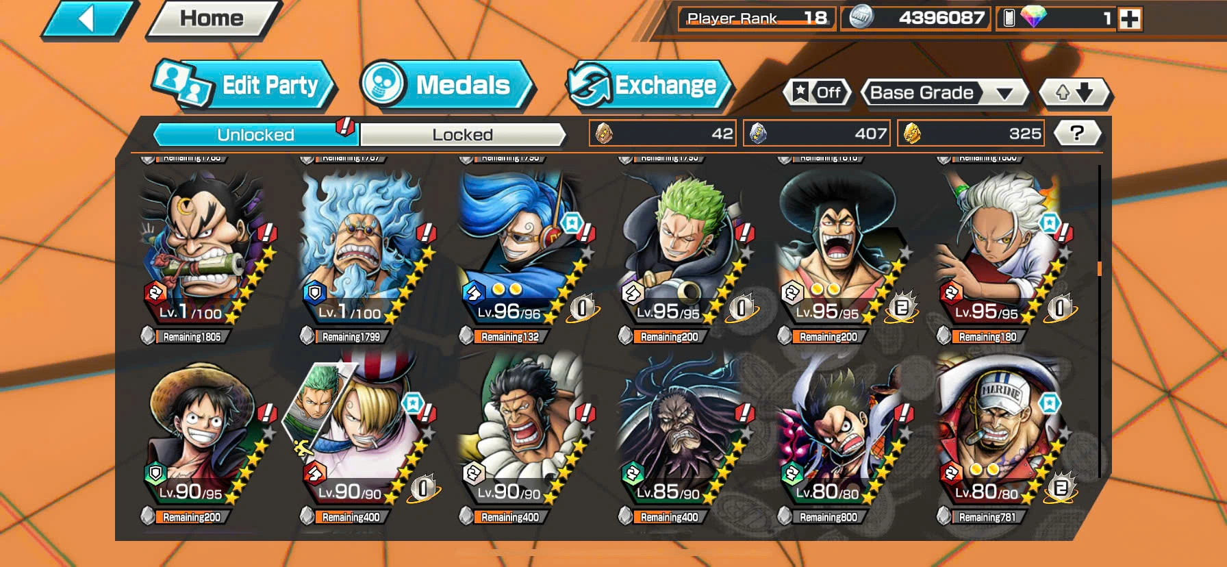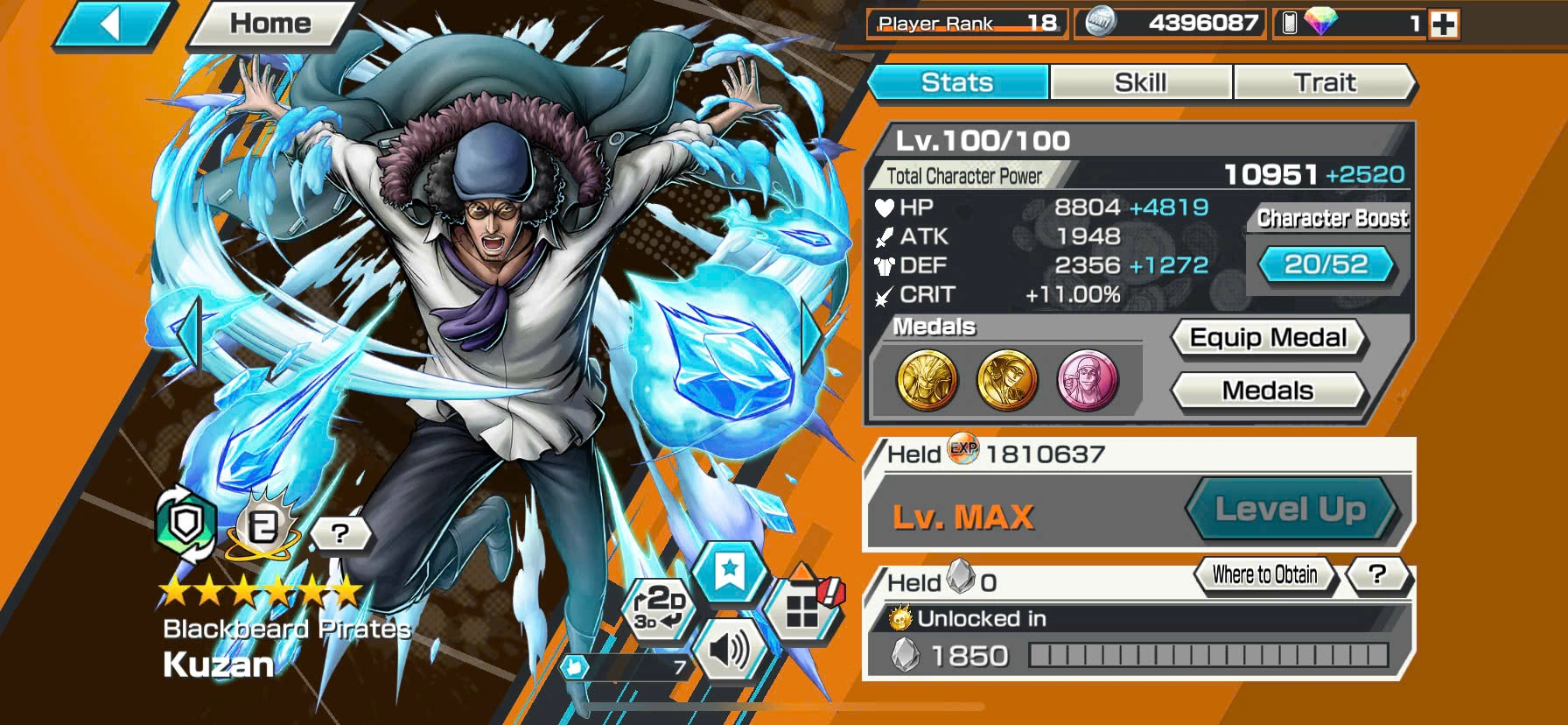 BR605-IOS+Android-6 Ex Meta(Luffy Gear 5 v2 Max+Kizaru Max+Kuzan Max+Sabo Max+Roger v2 Max+Akainu)+Good Medal+Support 142%+Sanji Max+White Beard Max+Kid Max+Rayleigh Max+Young Ray Max+S-Hawk+Issho