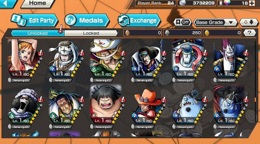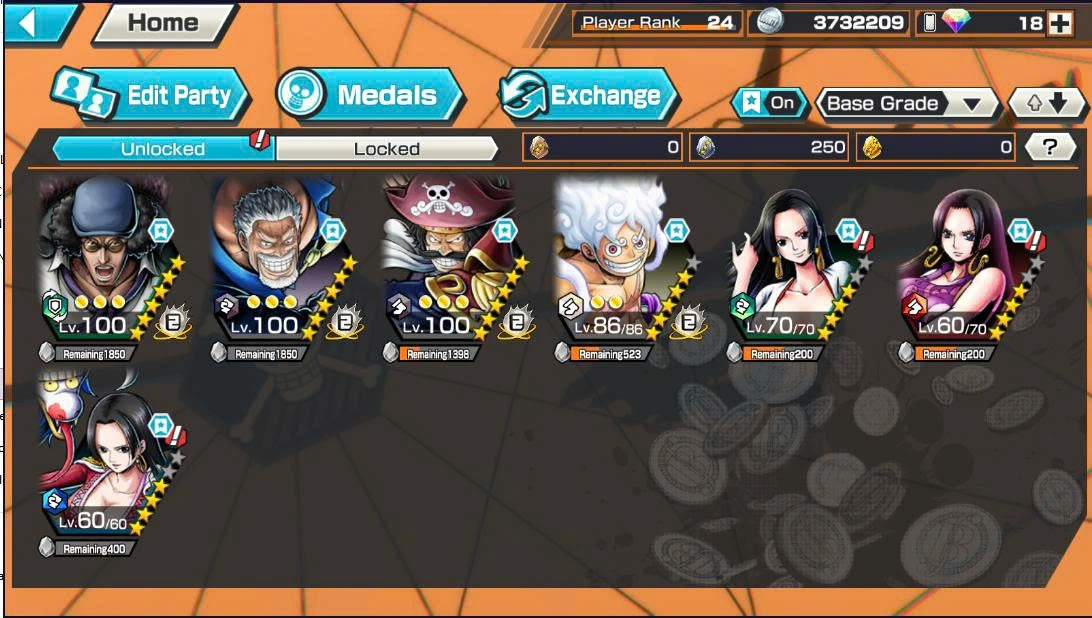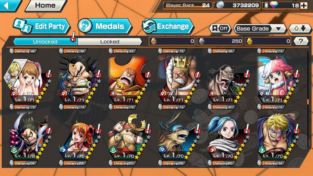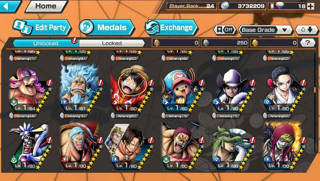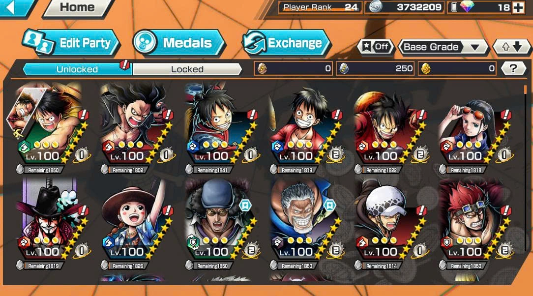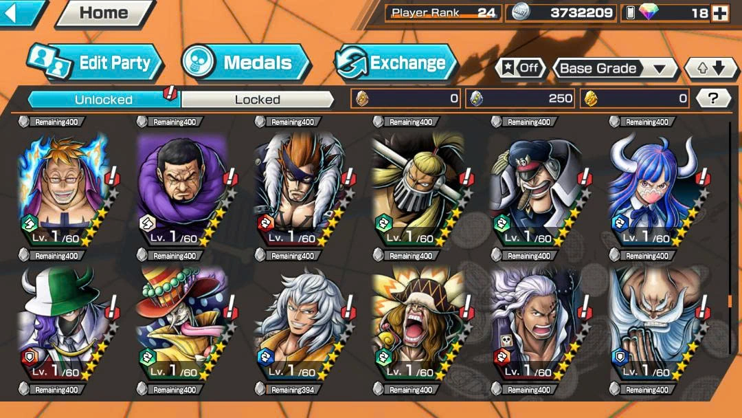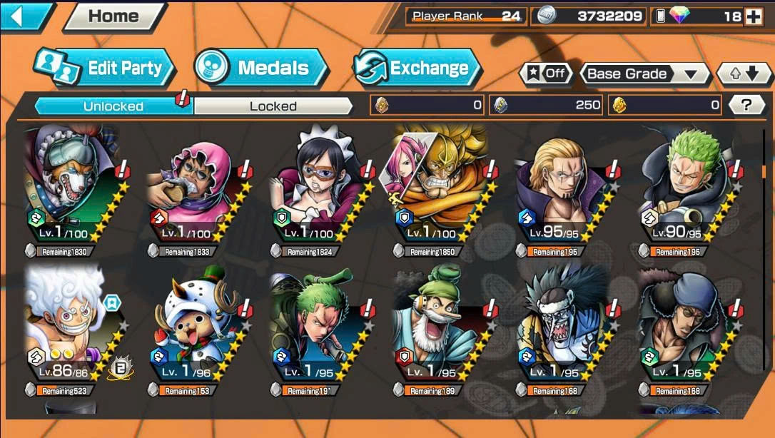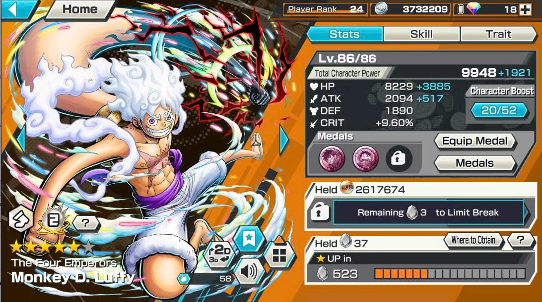 BR606-IOS+Android-4 Ex Meta(Luffy Gear 5 v2+Garp+Roger v2+Kuzan)+Good Medal+Support 142%+Law Max+Rayleigh Max+Katakuri Max+Shark+Oden v2+Amaraki v2+Shiryu v2+Egghead Luffy+Sentomaru v2+Issho+Alber