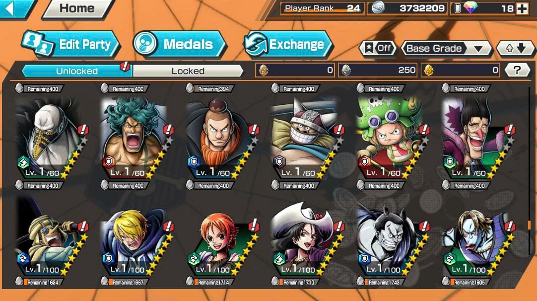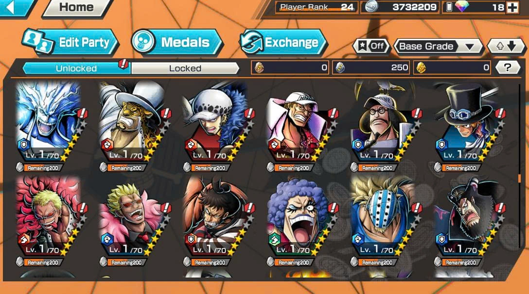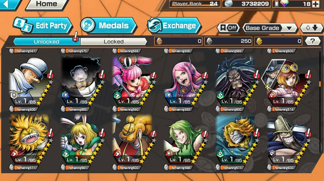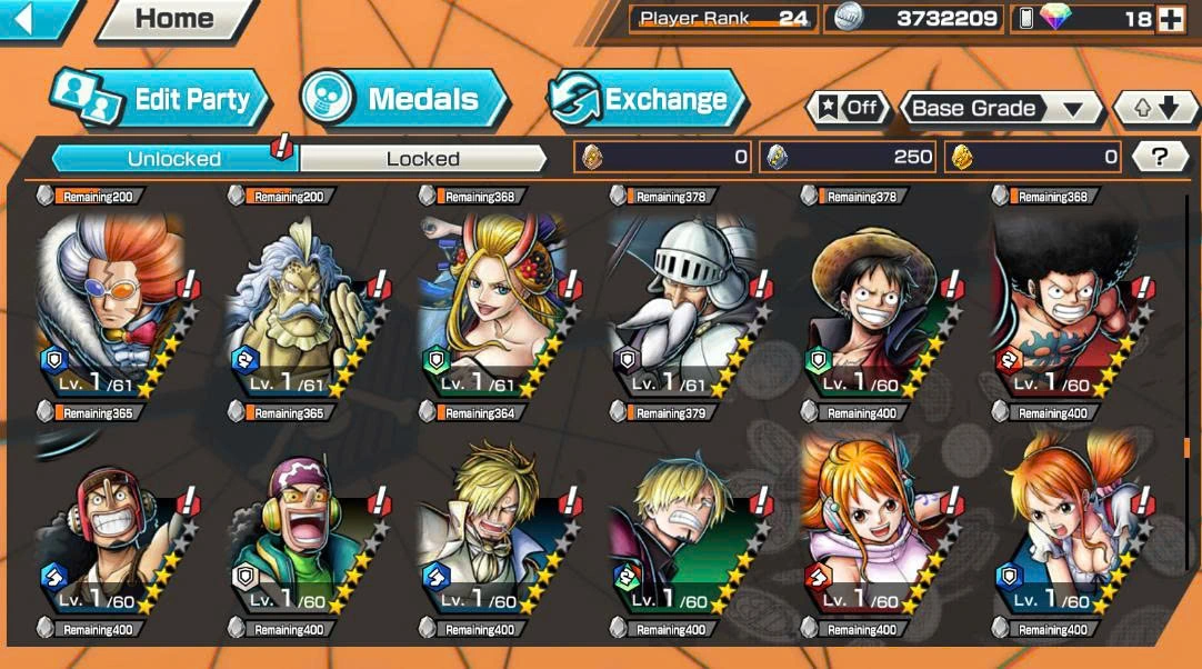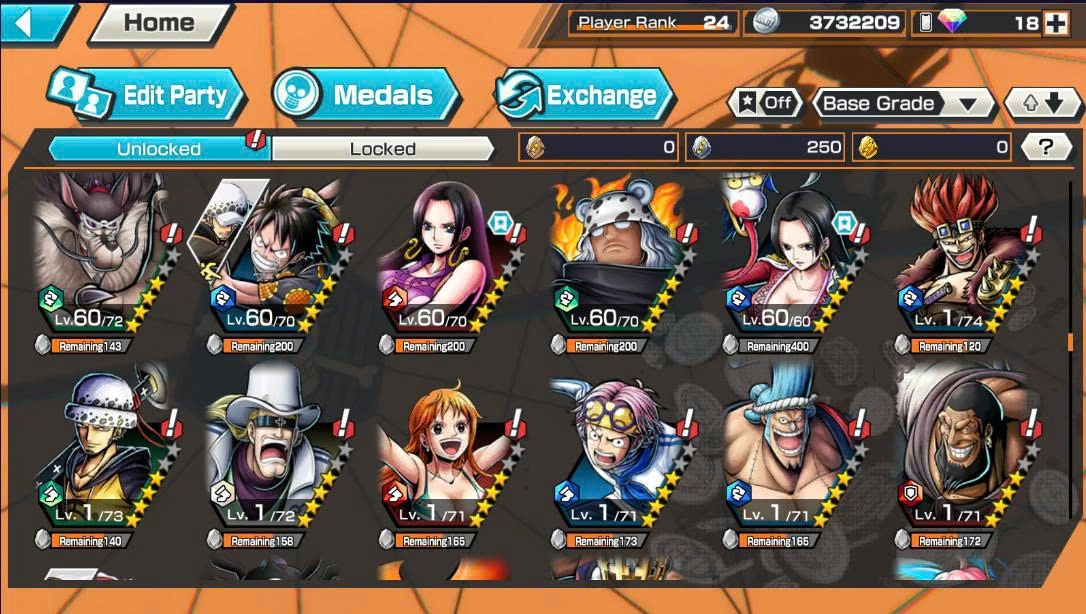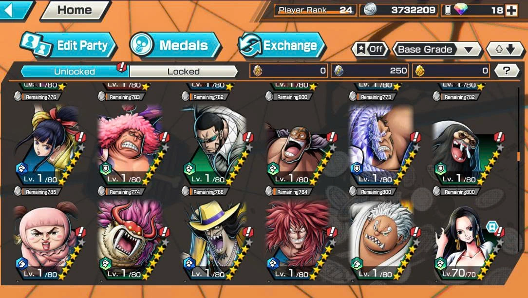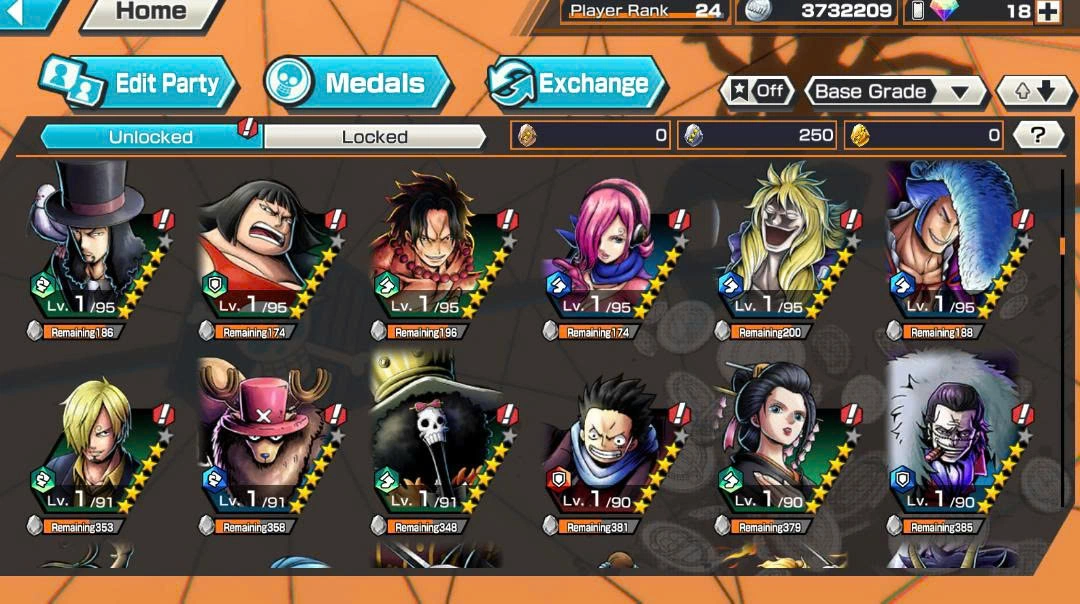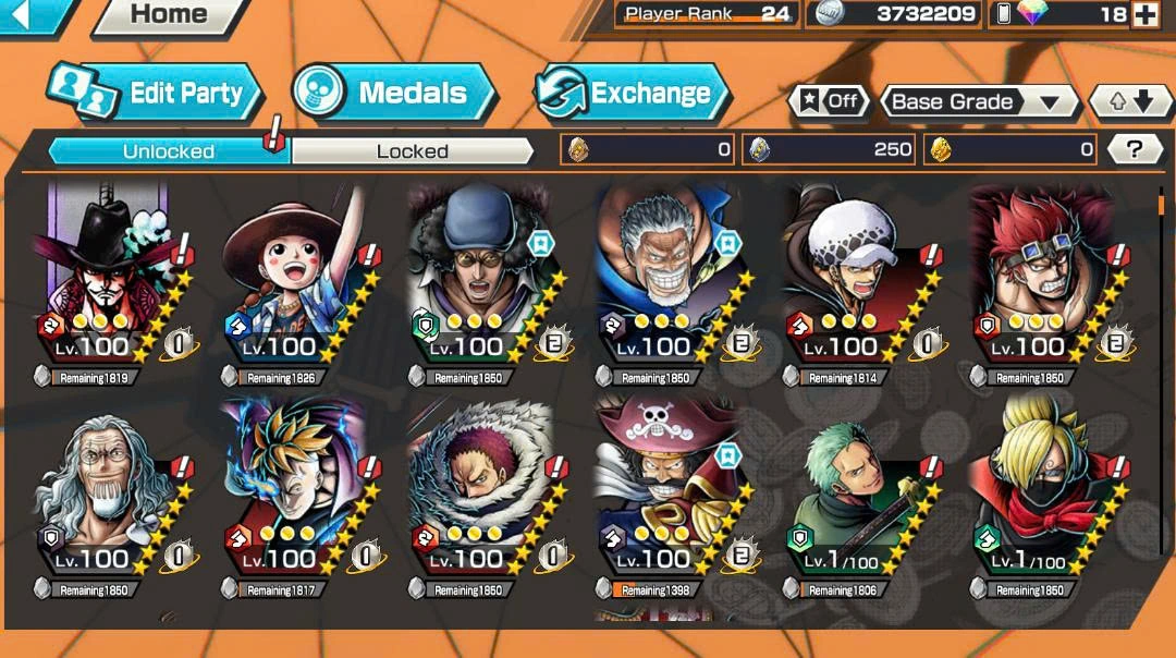 BR606-IOS+Android-4 Ex Meta(Luffy Gear 5 v2+Garp+Roger v2+Kuzan)+Good Medal+Support 142%+Law Max+Rayleigh Max+Katakuri Max+Shark+Oden v2+Amaraki v2+Shiryu v2+Egghead Luffy+Sentomaru v2+Issho+Alber