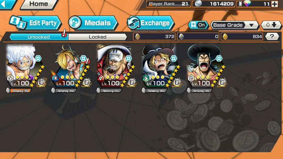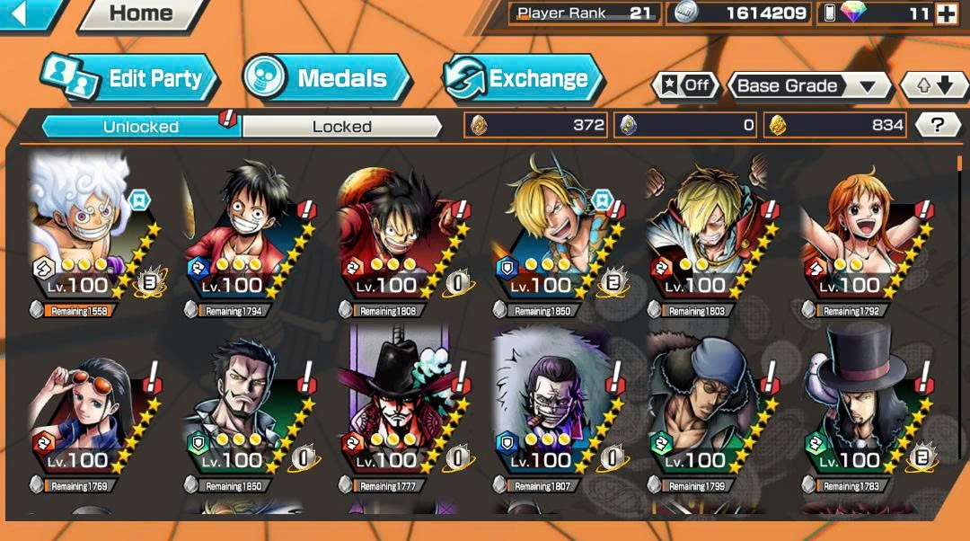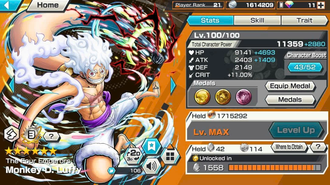 BR608-IOS+Android-Luffy Gear 5 v2 Boost 3 43/52+3 Ex Max(Sabo+Akainu)+834 Fragment+Good Medal+Support 147%+Sanji Max+Oden v2 Max+Law oni Max+Kalgara+Amaraki v2+S-Hawk+Shark+Issho