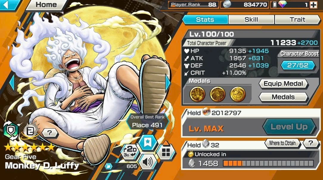BR616-IOS+Android-Hyber Boost 63+7 Ex(Luffy Gear 5+Shank v4+Sabo+Kuzan+Roger v2+Akainu+Big Mom)+Good Medal+Support 165%+Koby Max+Jabra Max+Craker Max+Peros Max+Sanji Max+Kid Max