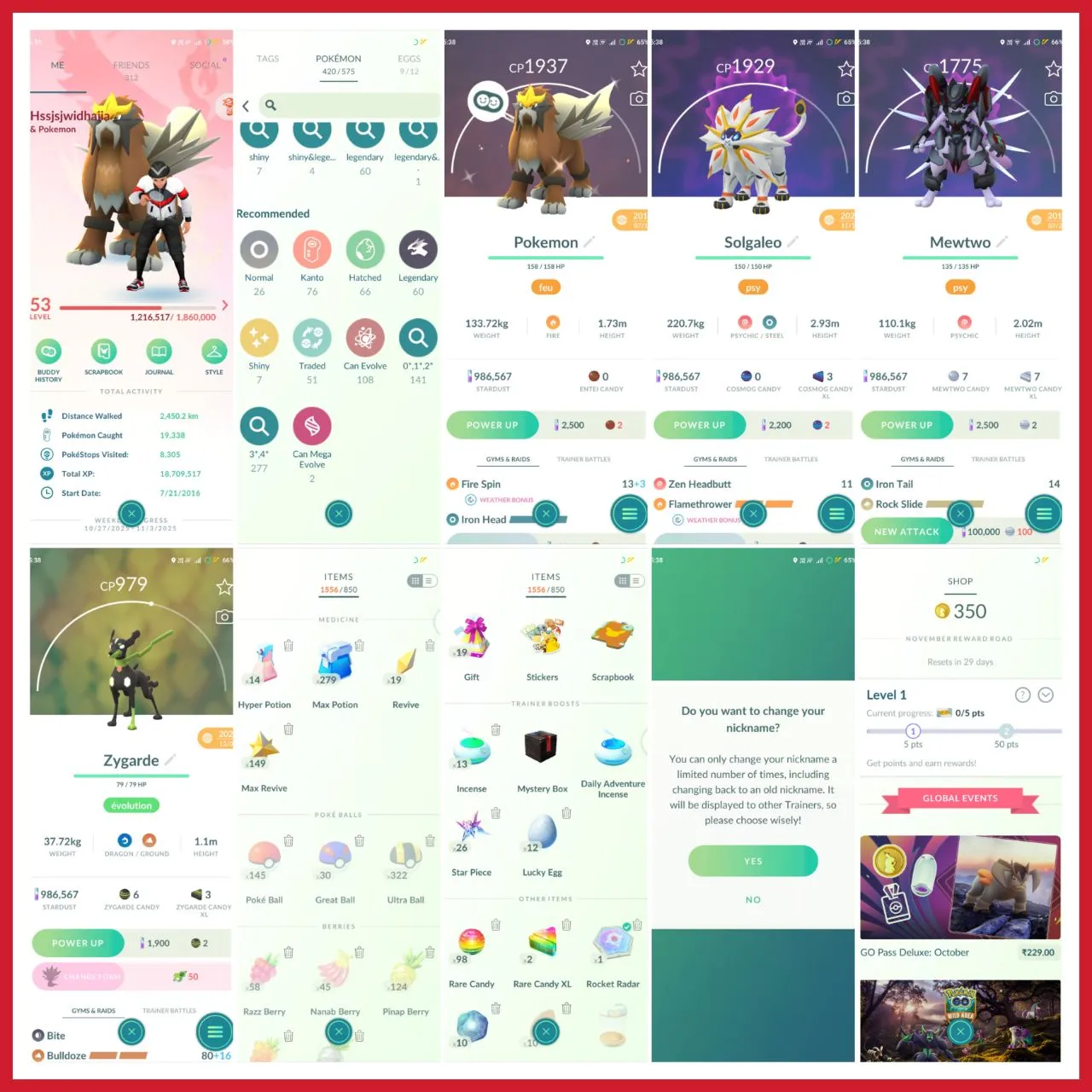 ⭕ 1x ARMOUR MEWTWO ( TRADEABLE + 2019 ) ⭕ 4 SL TRADEABLE ( 1x 2019 ) ⭕ SOLGALEO ⭕ LEVEL 53 ⭕ YEAR 2016 ⭕ FULL ACCESS ⭕ INSTANT DELIVERY ✅