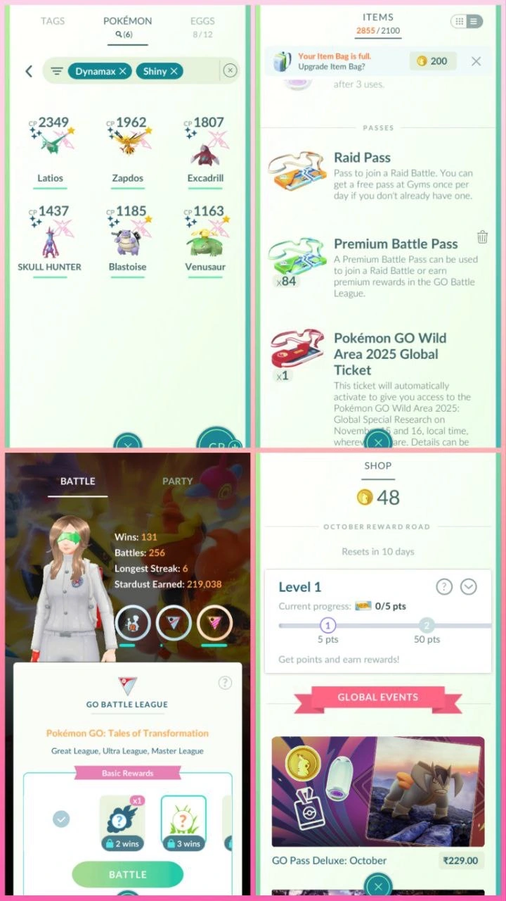 ๐{GLOBAL } GO WILD ARENA 2025 Ticket ๐ซ LVL 59 {2k17 Acc} ๐ 301 LEGENDARY โจ 320 SHINY ๐ 67 SHADOW ๐ฅ 156 EVENT MONS ๐ + 19 GIGANTAMAX โก 6 DYNAMAX ๐ฅ 37 HUNDO ๐ฏ 2 HUNDO LEGENDARY ๐ + 5 SHINY SPECIAL BACKGROUND ๐ 84 PREMIUM RAID PASS ๐ซ |