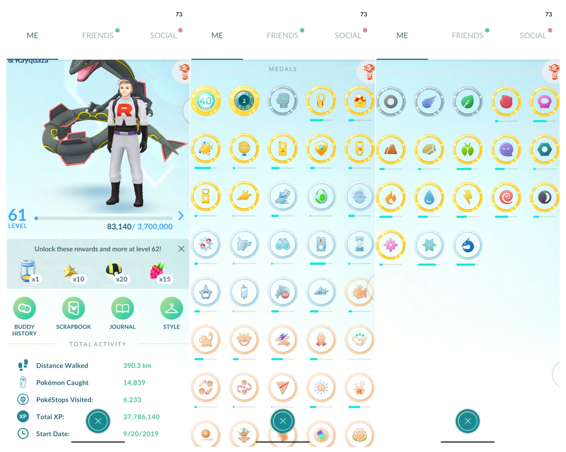 LEVEL 61 ⭐ 2019 CREATION 📅 TOTAL 895 POKÉMONS 🔢 2.3M STARDUST ✨ SHINY LEGENDARY RAYQUAZA 🐉 68 MYTHICALS 🧬 27 COSTUME POKÉMON 👕 OLD POKÉMONS SINCE 2019 🕹️ INSTANT DELIVERY ⚡