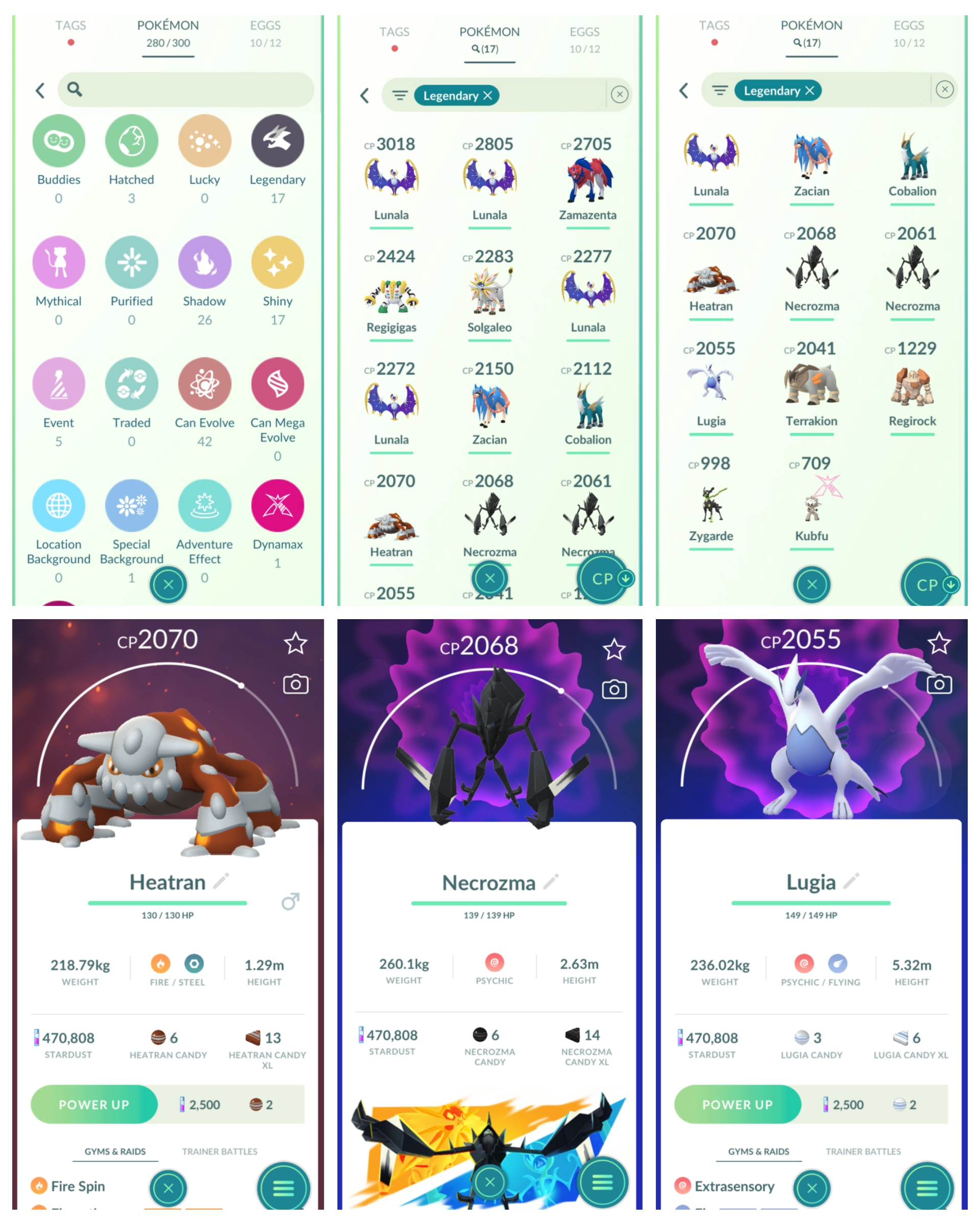 p157🔥Legendary: 17🔥Shiny: 17🔥Types of Legends: 13🔥Lunala 3K🔥Solgaleo🔥Regigigas🔥Zamazenta🔥Zacian🔥Heatran🔥Necrozma🔥Lugia🔥Terrakion🔥Regirock