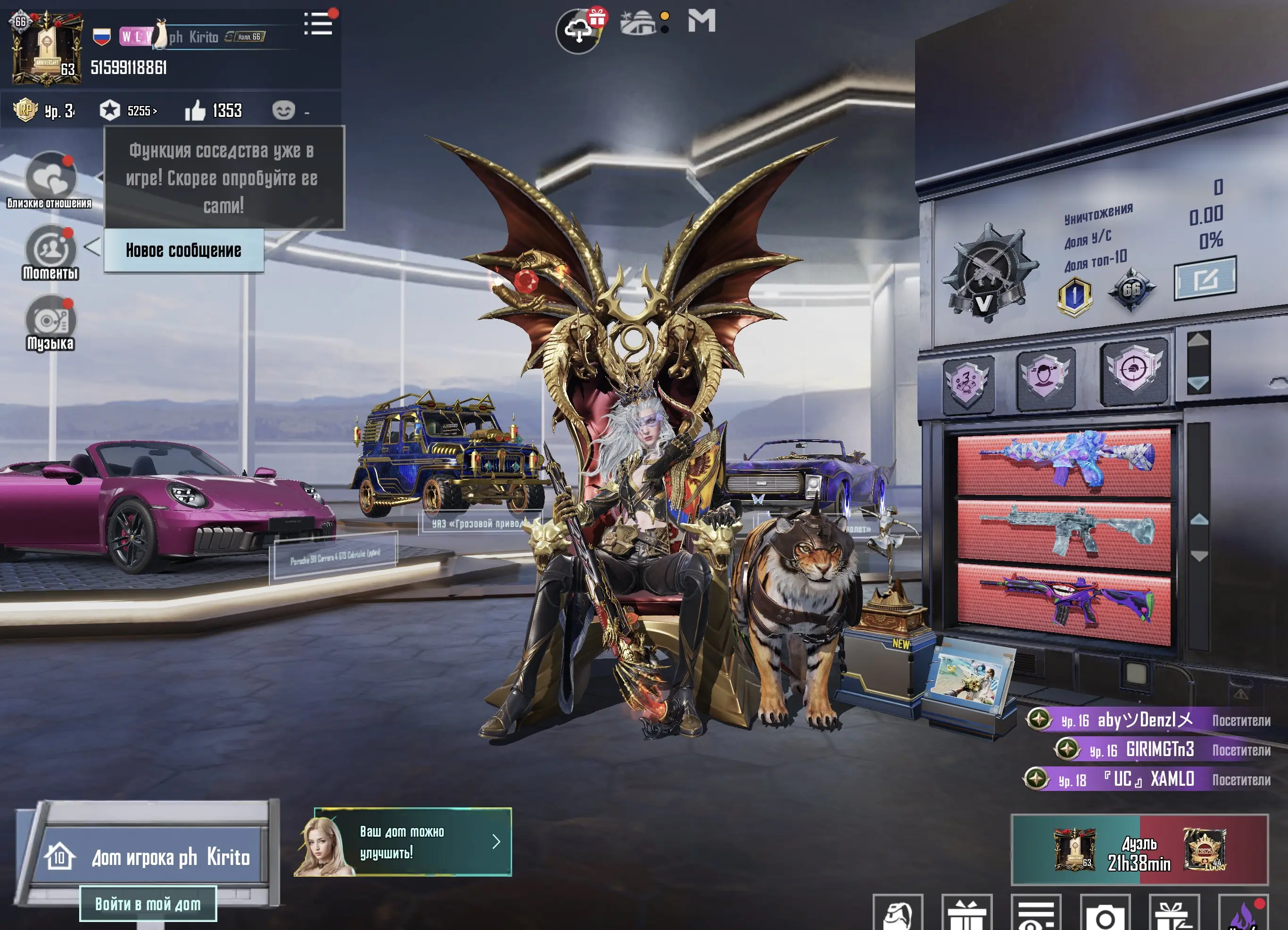 ⭐️ X-DRAVION FULL ⭐️🔴 3 FULL M416 🔴🔥 23 GOLDEN SUITS 🔥♦️ 33 KILLCHAT ♦️🚘 PORSCHE 🚘🎀 EXTERIOR 🎀