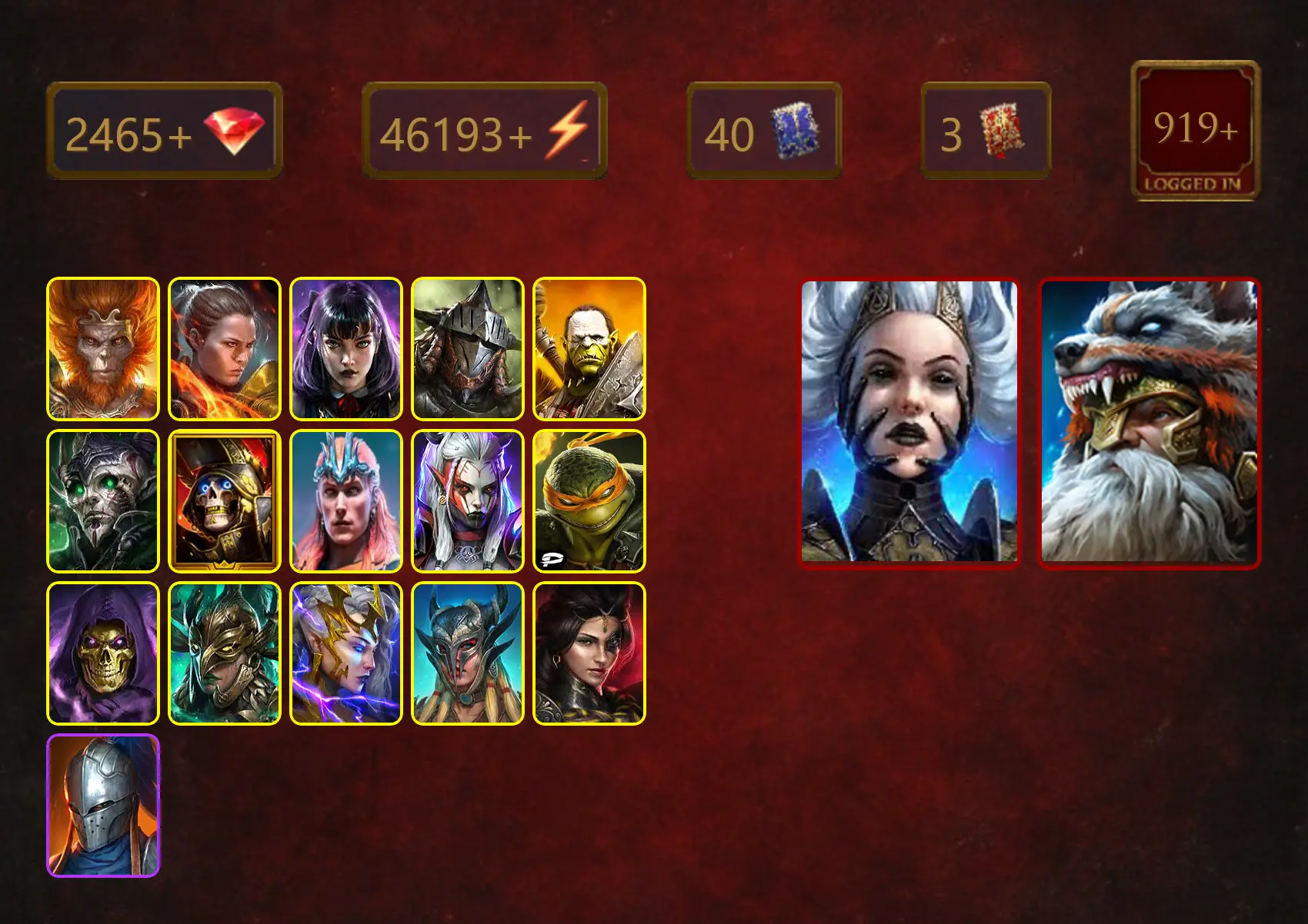 [STARTER][Double Mythical]+Queen Krixia+Fjorad+Wukong+Ronda+Alice+Rathalos+Artak+Noct The Paralyzer+Deathknight+Loki+41Epics