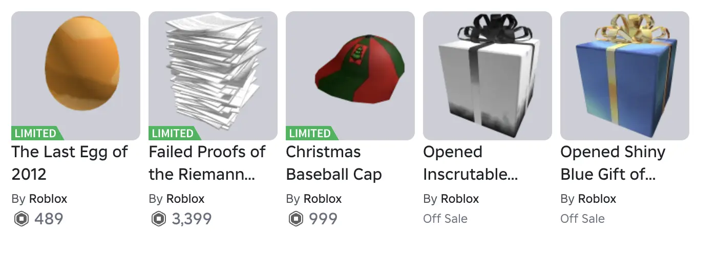ROBLOX 2007 Account đ 5+ Offsales & Limiteds đ Failed Proofs of the Riemann Hypothesis + Christmas Baseball Cap + 4.5K RAP | 0 Robux SPENT | Unverified | 18+