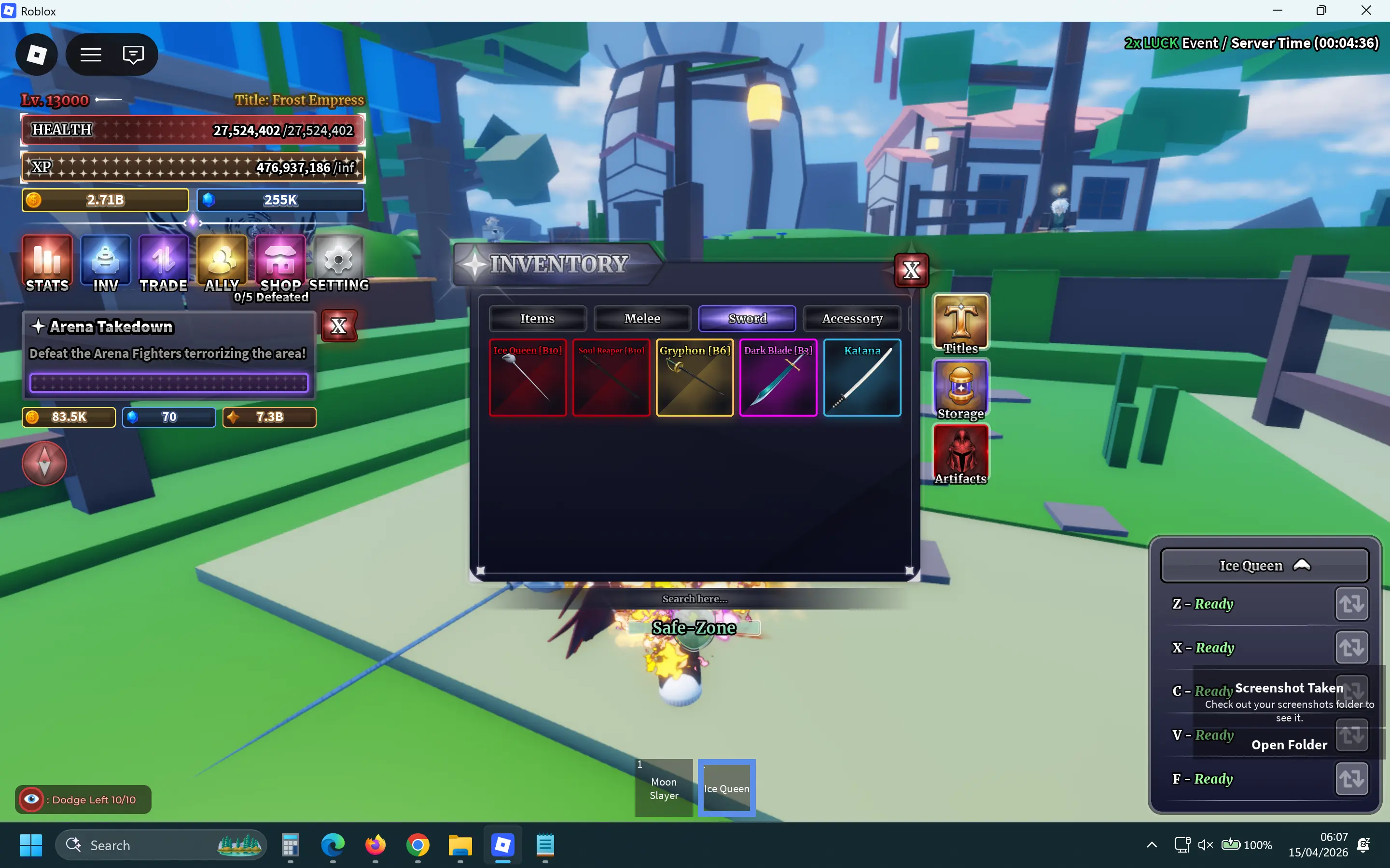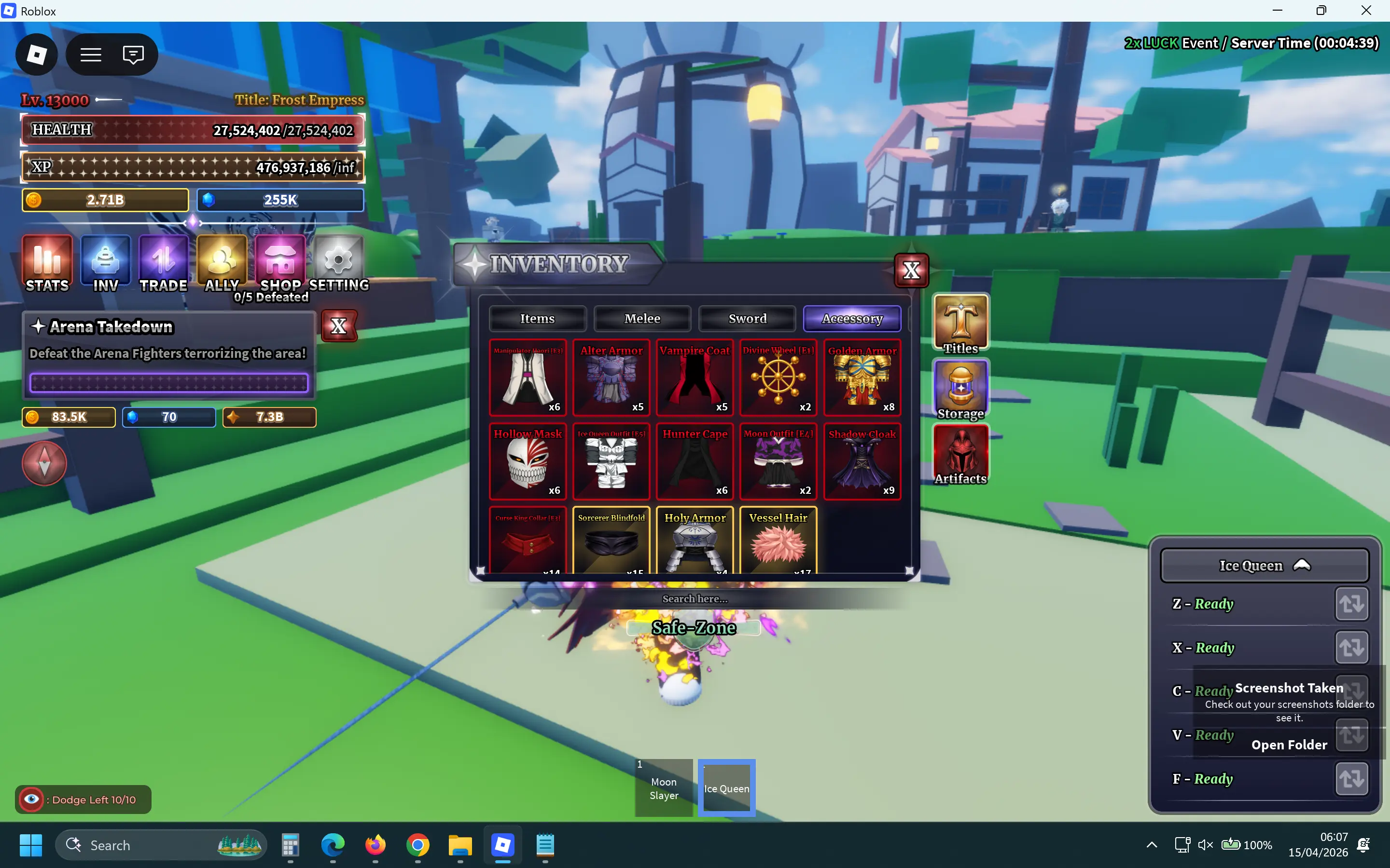 [Instant] [Sailor Piece] Lv13000 | Moon Slayer(+F), King of Heroes, Corrupted Excalibur, Strongest in History | Ice Queen(+F), Soul Reaper | Luckborn | Overlord | Frostbane | Title: Frost Empress | Cursebrand | Ice Queen Outfit