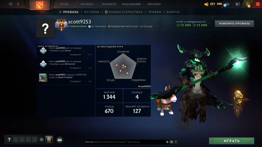 ⚔️ 10000 MMR⚔️💹 BASIC ACCOUNT ━ 3000+ hours in Dota 2 ✅ Full access ⚔️ Mainpool 💹