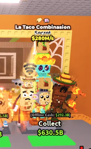 La Taco Combinasion coûte 5 G$ et génère 35 M$ par seconde. C’était le 8e Brainrot en édition limitée à quantité restreinte, avec un stock mondial de 500 000 unités. Le stock a été entièrement écoulé le 4 novembre 2025, après seulement deux semaines de disponibilité. Environ 75 000 unités seulement ont été vendues, ce qui en fait le Brainrot limité le moins populaire et le moins vendu de l’histoire du jeu. À propos de La Taco Combinasion