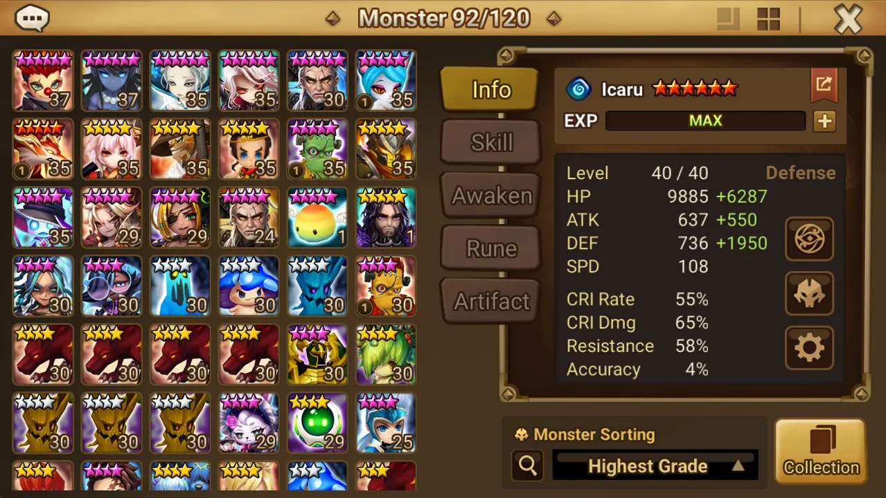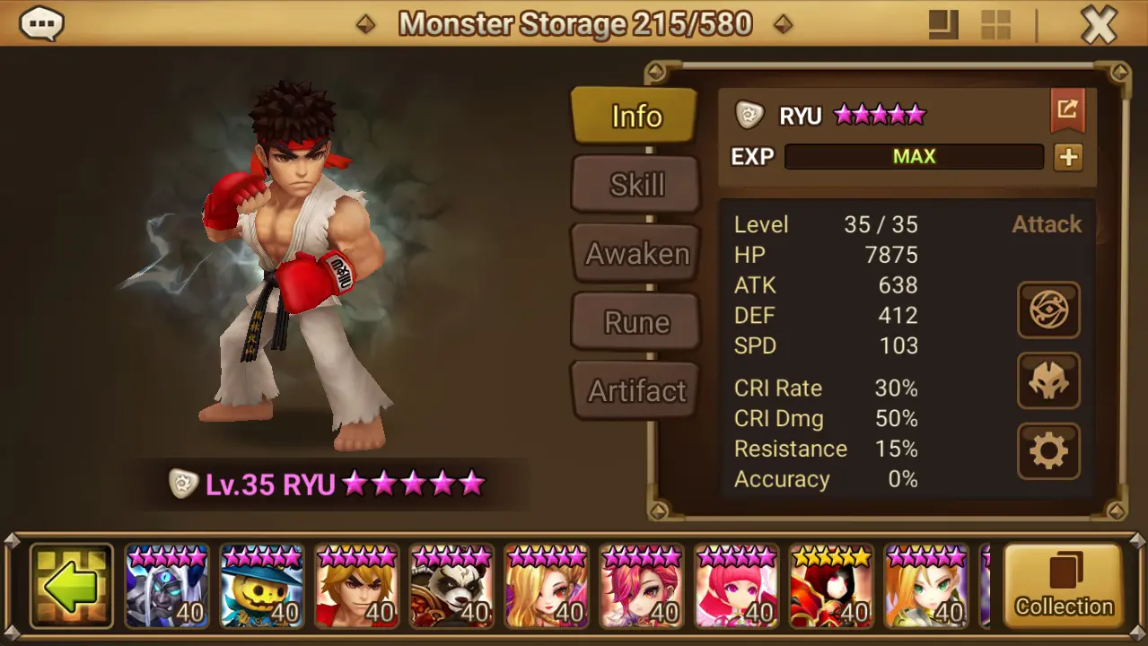 Global ⸱ 55 LVL + 6*-53 + Rare LD5 ⸱ RYU ( Light ) + 23 Nat5 + Fire ⸱ SSS + Chaos 5 lvl + KEN + Bastet + Fire RYU + Liam + Nora + Geralt