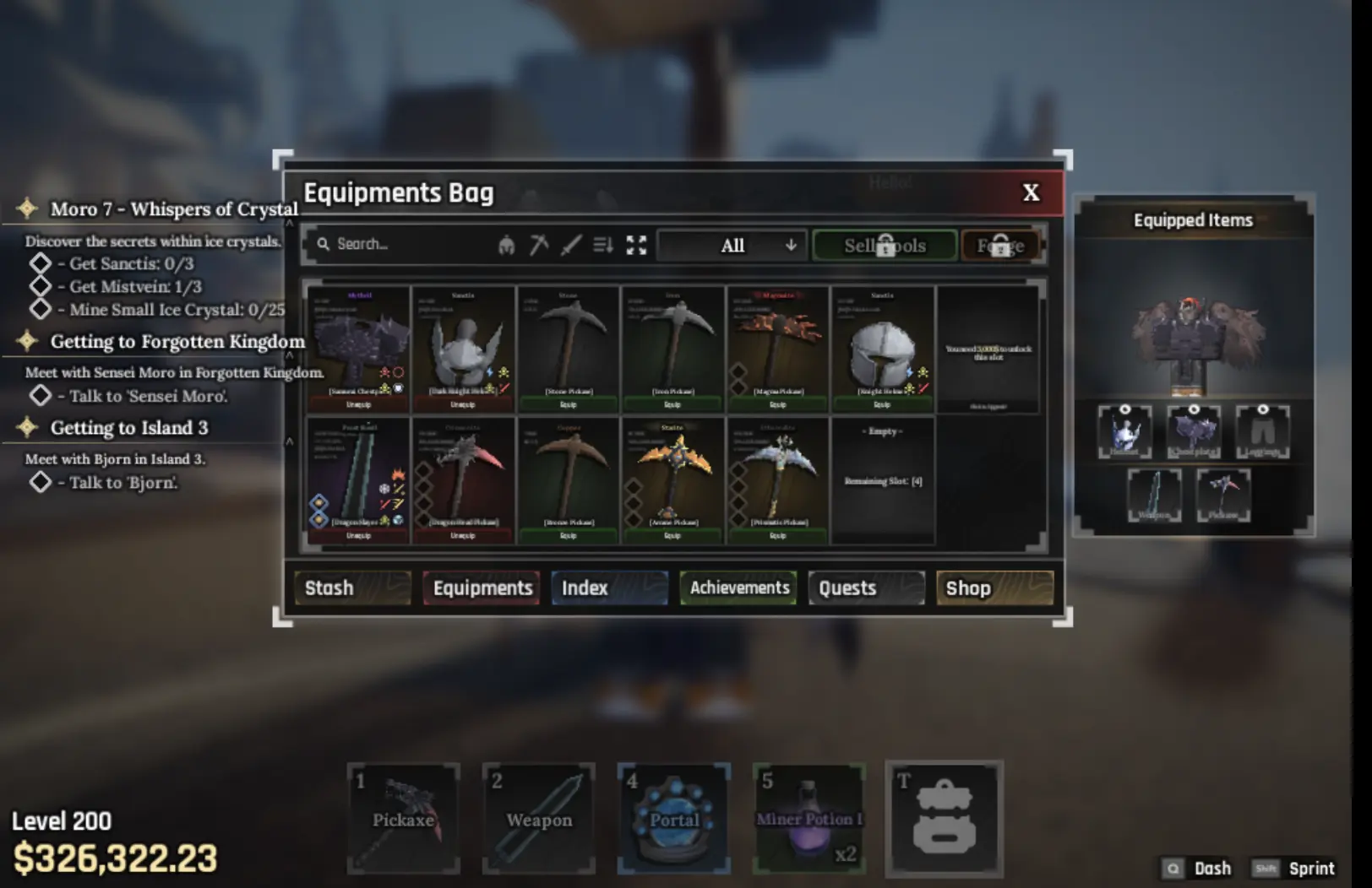 Instant Delivery ๐บ Demon Race โ๏ธ Dragon Head + Prismatic + Magma + Arcane Pickaxes โ๏ธ LVL 200 ๐ฐ 326K Coins ๐ Frost Fossil Dragon Slayer ๐ฟใTHE FORGEใ