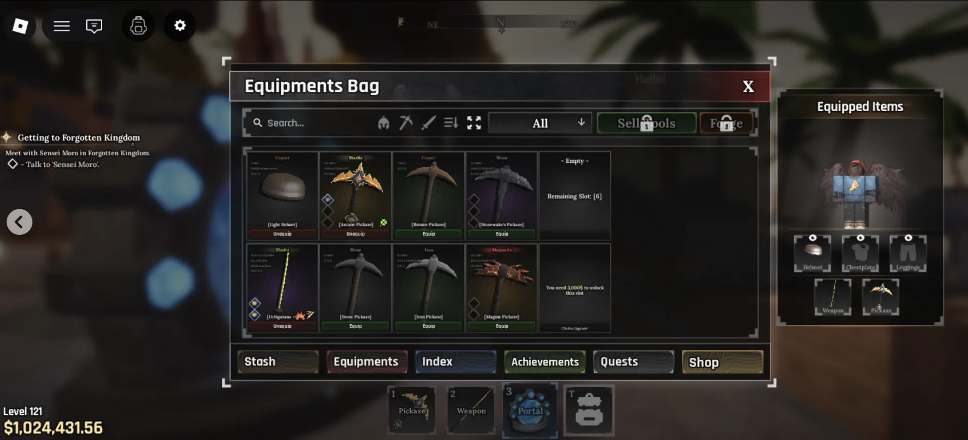 Instant Delivery ๐บ Demon Race โ๏ธ Lvl 121 ๐ฐ 1M Coins โ๏ธ Magma + Arcane Pickaxes ๐ก๏ธ Uchigatana ๐ก๏ธ Copper Light Helmet ๐ฟใTHE FORGEใ