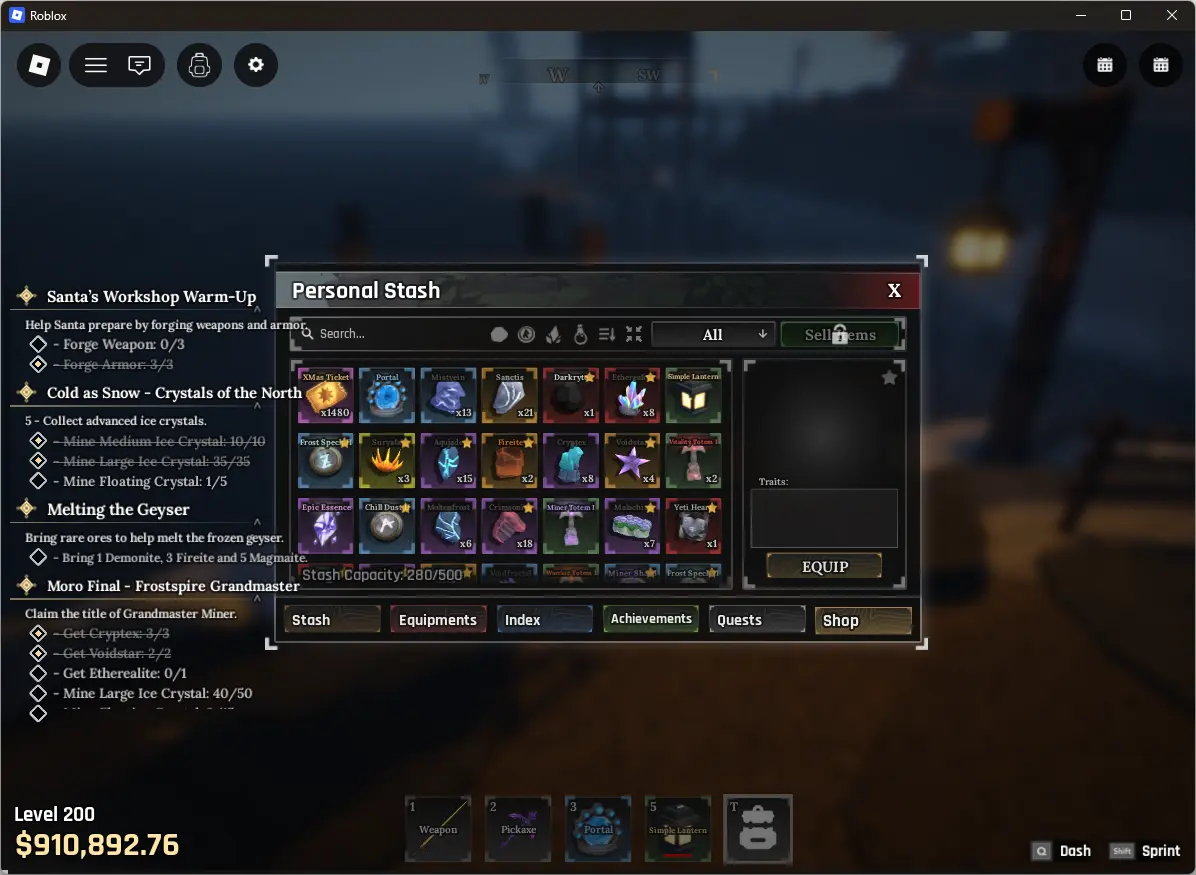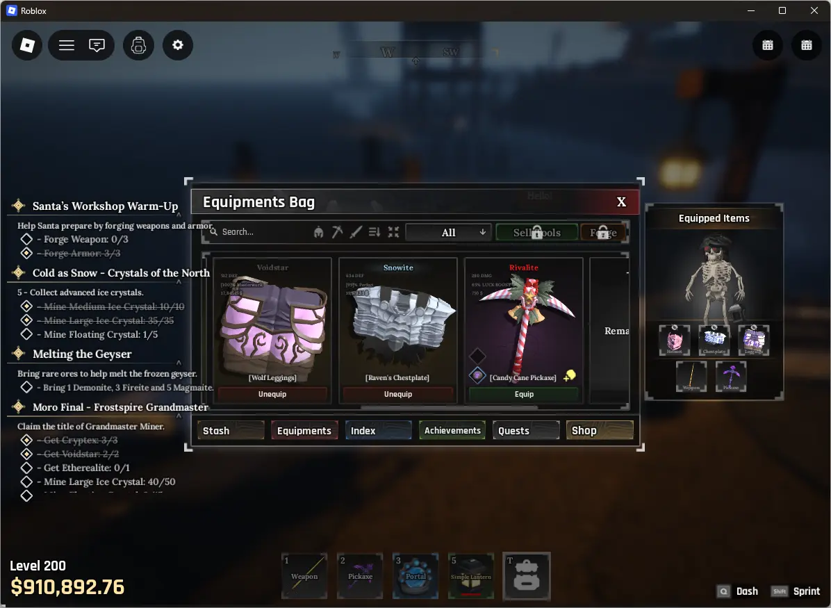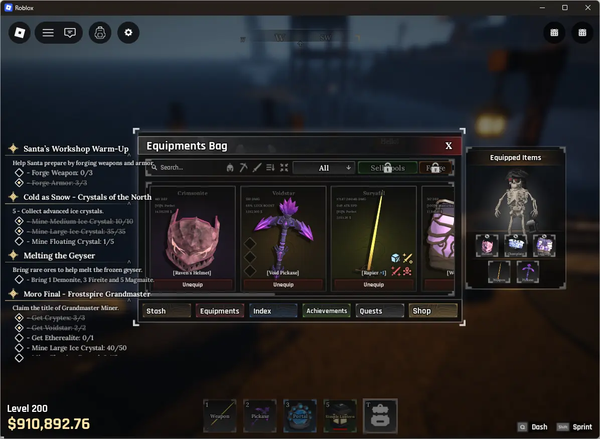 ❤️ The Forge ❤️ 200 lvl ❤️ demon race ❤️ 910K cash ❤️ void pickaxe ❤️ wolf leggings ❤️ ravens chestplate ❤️