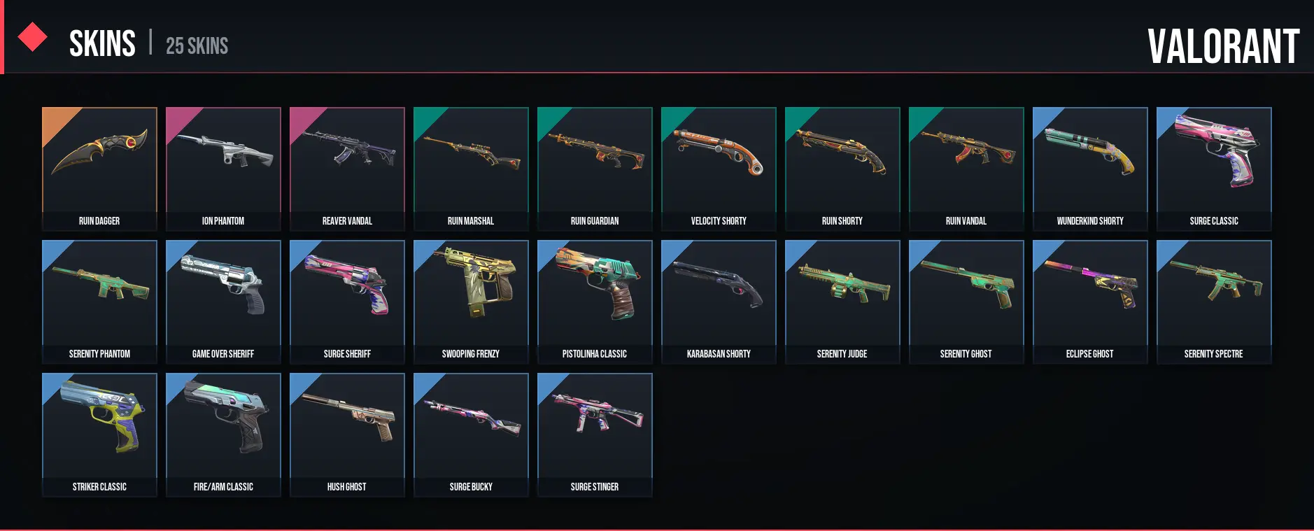 25 Skins / 3550 VP SPENT / Ruin Dagger / Reaver Vandal / Ion Phantom
