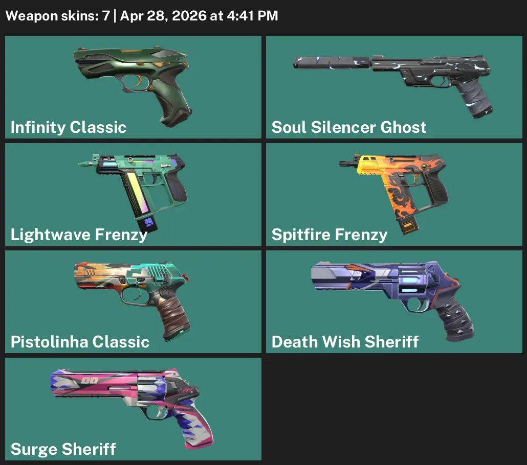 AP | 7 Skins | exp SILVER 2 | Spitfire Frenzy | Infinity Classic | Soul Silencer Ghost | Lightwave Frenzy | Pistolinha Classic | #AXA0668