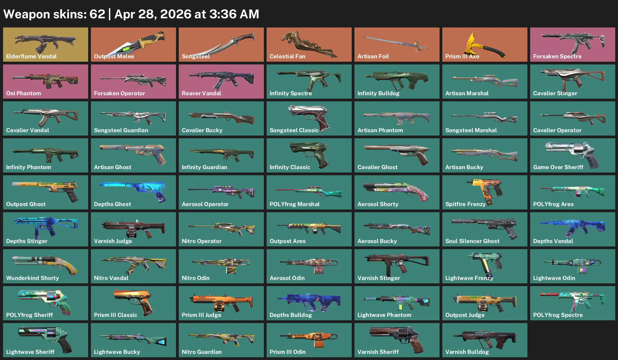 AP | LVL 125 | exp Bronze 1 | Elderflame Vandal + Outpost Melee + Songsteel + Celestial Fan + Artisan Foil | O4G