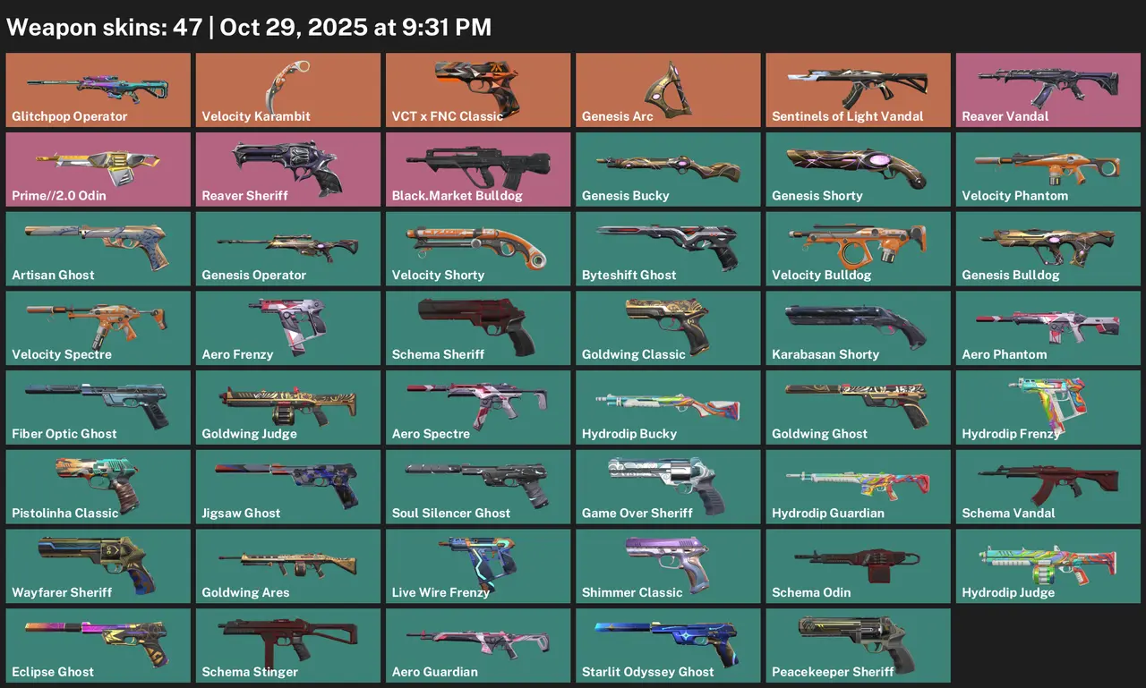 [Asia] 🔥 | 47 Skins • Glitchpop Operator + Velocity Karambit + Genesis Arc + Reaver Vandal • ~11,450 VP • Full Access