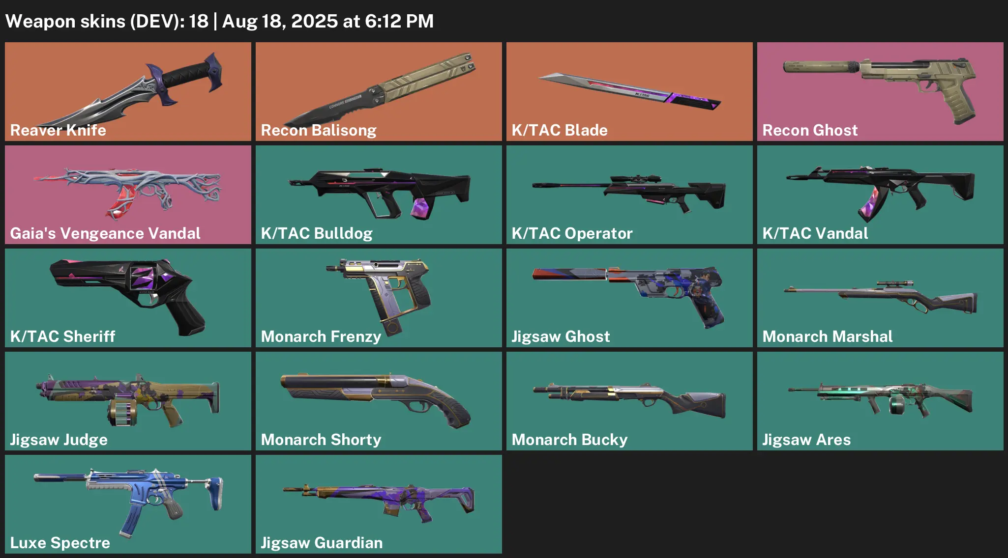 🌍 EU 🐲(18) Skins 🦑Reaver Knife 🎨Recon Balisong 🎺K/TAC Blade 🌌Recon Ghost 🐳Gaia's Vengeance Vandal ✨BK/TAC Bulldog 🐚K/TAC Operator 🔮K/TAC Vandal 🎇K/TAC Sheriff 🎯V25 💌 Mail Changeable 🏰 Full Access