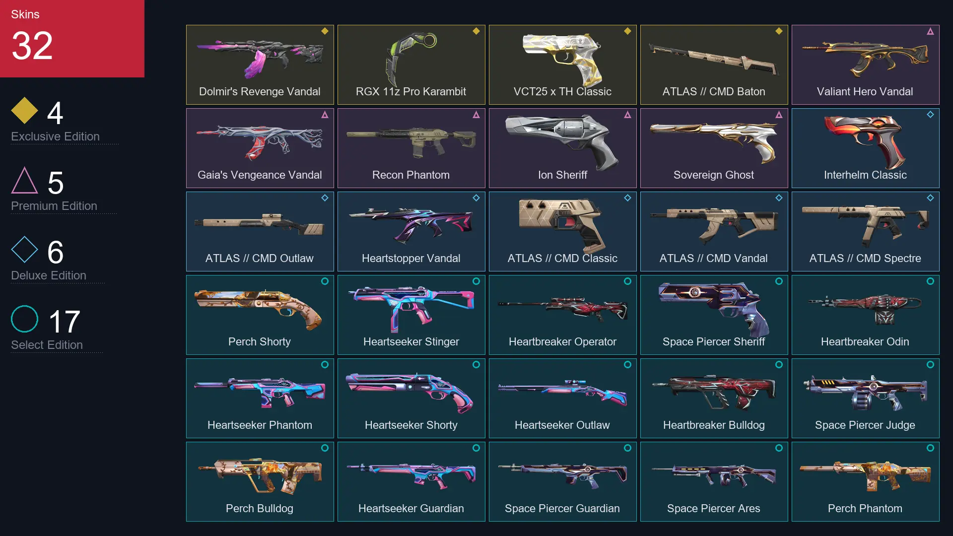 🪐 EU 🍩 32 Skins ✨ 16 Agents ✨ 85 Level 🎭 🍇 Valiant Hero Vandal 🌟 Dolmir's Revenge Vandal 🐸 Gaia's Vengeance Vandal 🦋 Recon Phantom 🌠 RGX 11z Pro Karambit +27 more