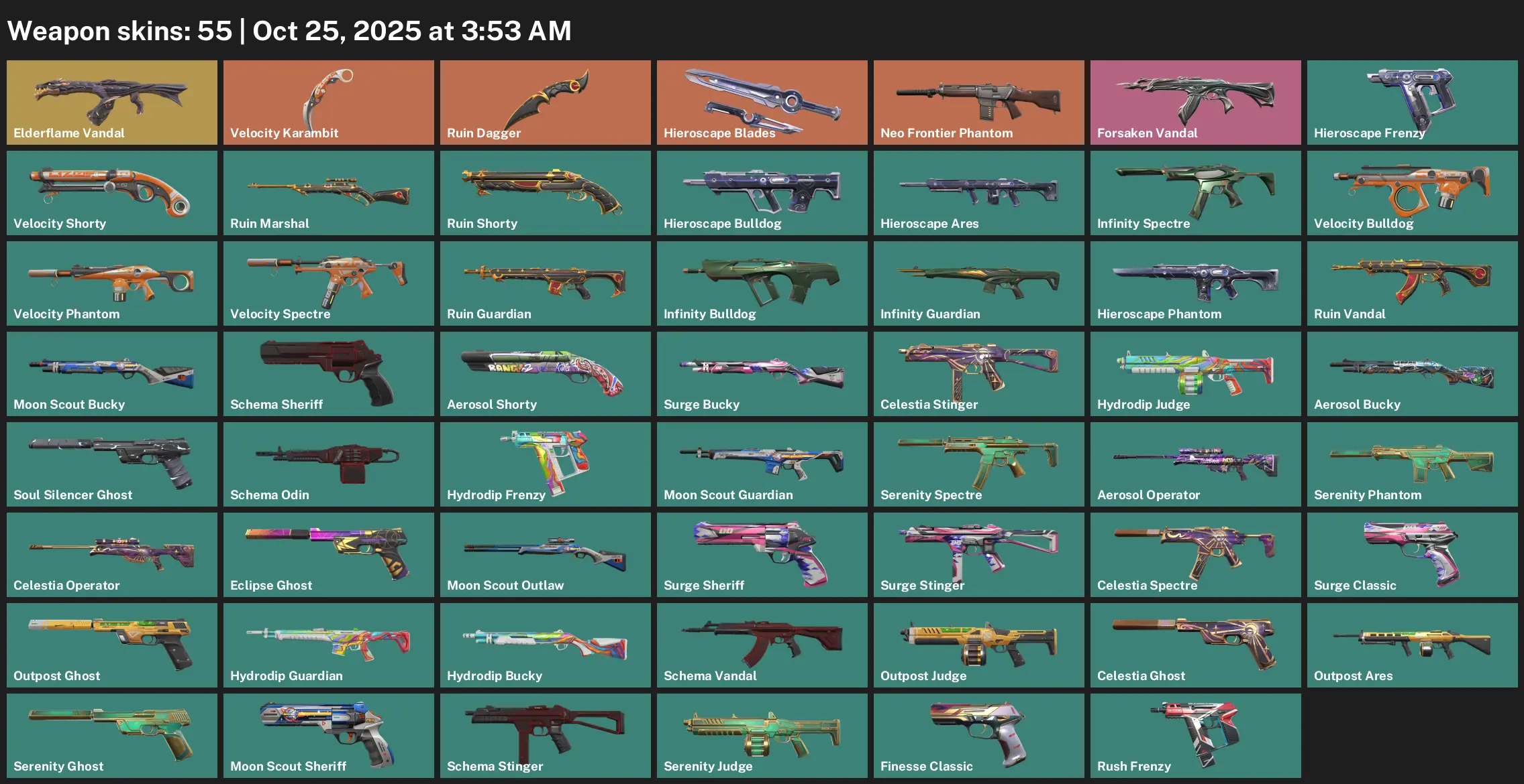 EU | 55 Skins | exp PLATINUM 1 | Ruin Dagger | Elderflame Vandal | Forsaken Vandal | Ruin Vandal | Neo Frontier Phantom | Schema Vandal | S4G